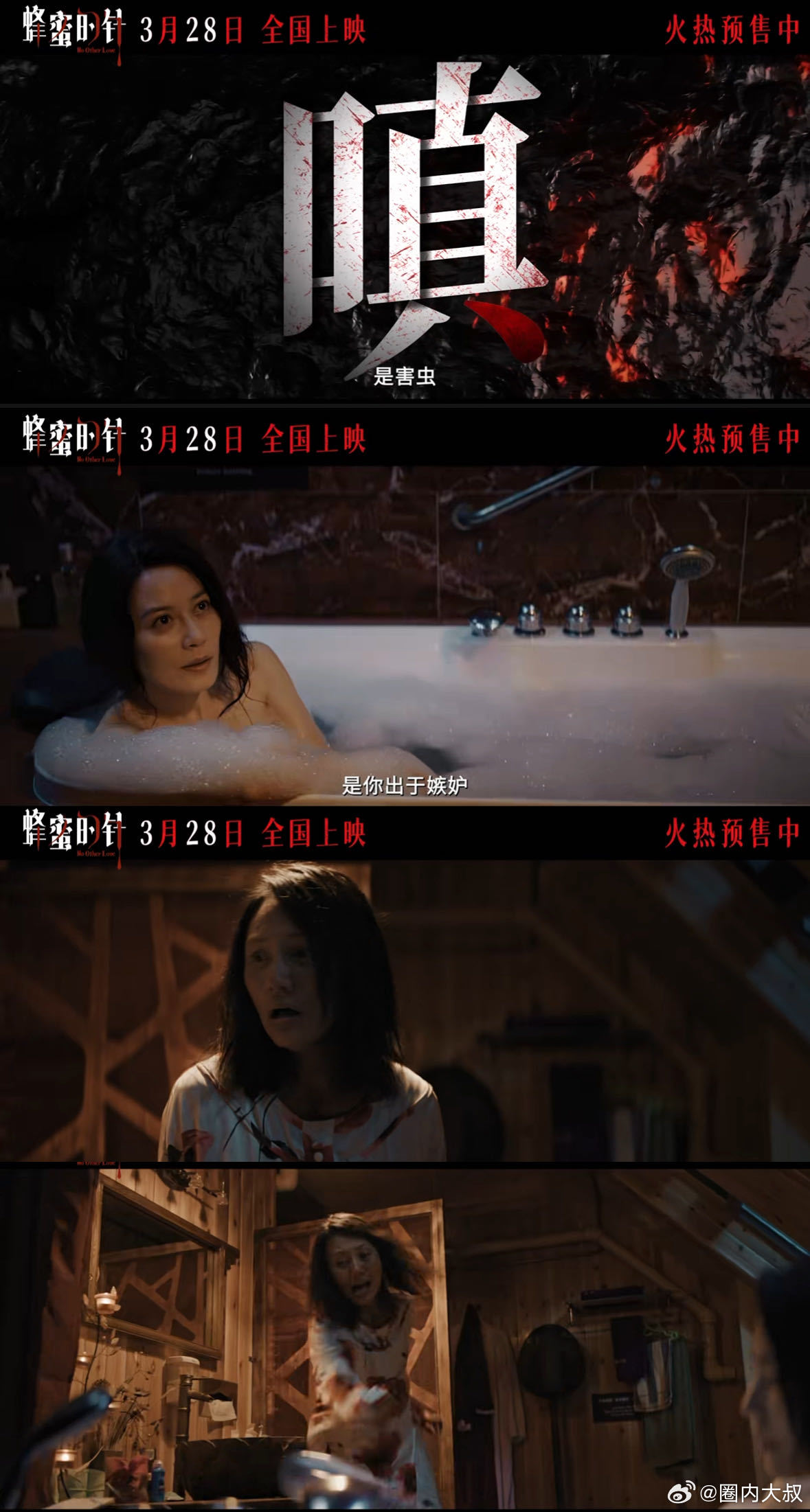 电影蜂蜜的针重新定义爱嗔痴 终极预告暗藏杀机,袁泉演绎平静下的疯癫,爱嗔痴皆成原罪。四大影后罕见同框,全员演技炸裂。超前女性犯罪题材直击人心,3月28日影院见,预售已启!袁泉新片平静疯感