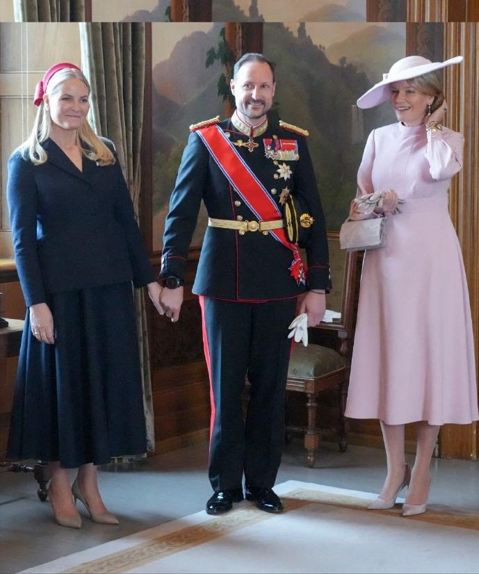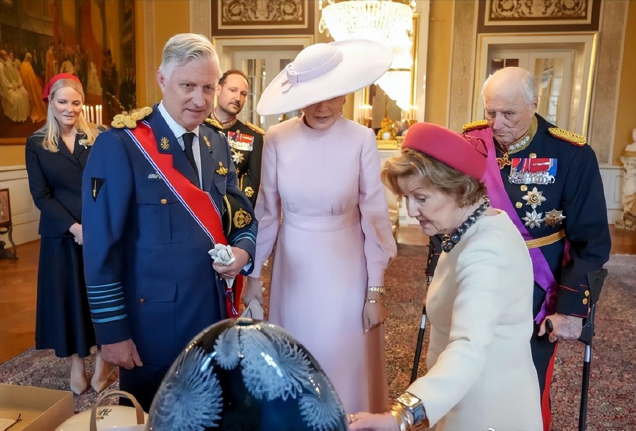 如果说凯特王妃是幸运的,那挪威王储妃就一定是灰姑娘中的天花板了! 当地时间3月24日,比利时国王菲利普和妻子马蒂尔德王后抵达挪威,进行时隔29年来的首次比利时国王对挪威的访问。 挪威王室为比利时国王王后的到来举办了隆重的欢迎仪式,因为种种原因,梅特这位挪威王储妃取消了接待比利时国王王后的行程。 哈康王储独自前往机场迎接表兄比利时国王夫妇,在欢迎仪式上,也只有挪威国王王后和哈康这位王储亮相这样重要的场合。 但是原定缺席的梅特王储妃却现身了在王宫参观展览的活动中,哈康更是在活动中始终紧紧牵着妻子的手,是爱,也是一种支持,不离不弃。 凯特王妃是幸运的,但是她是优秀的,因此相比而言,梅特上辈子肯定不止拯救了银河系。