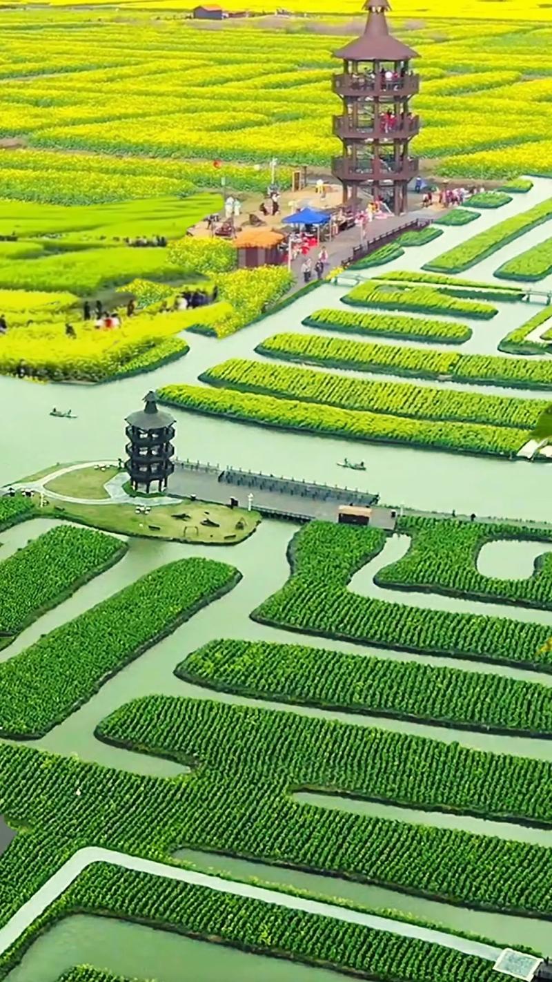2️⃣.花田驿站,全球唯一水上垛田油菜花,被国家地理认证的春日顶流