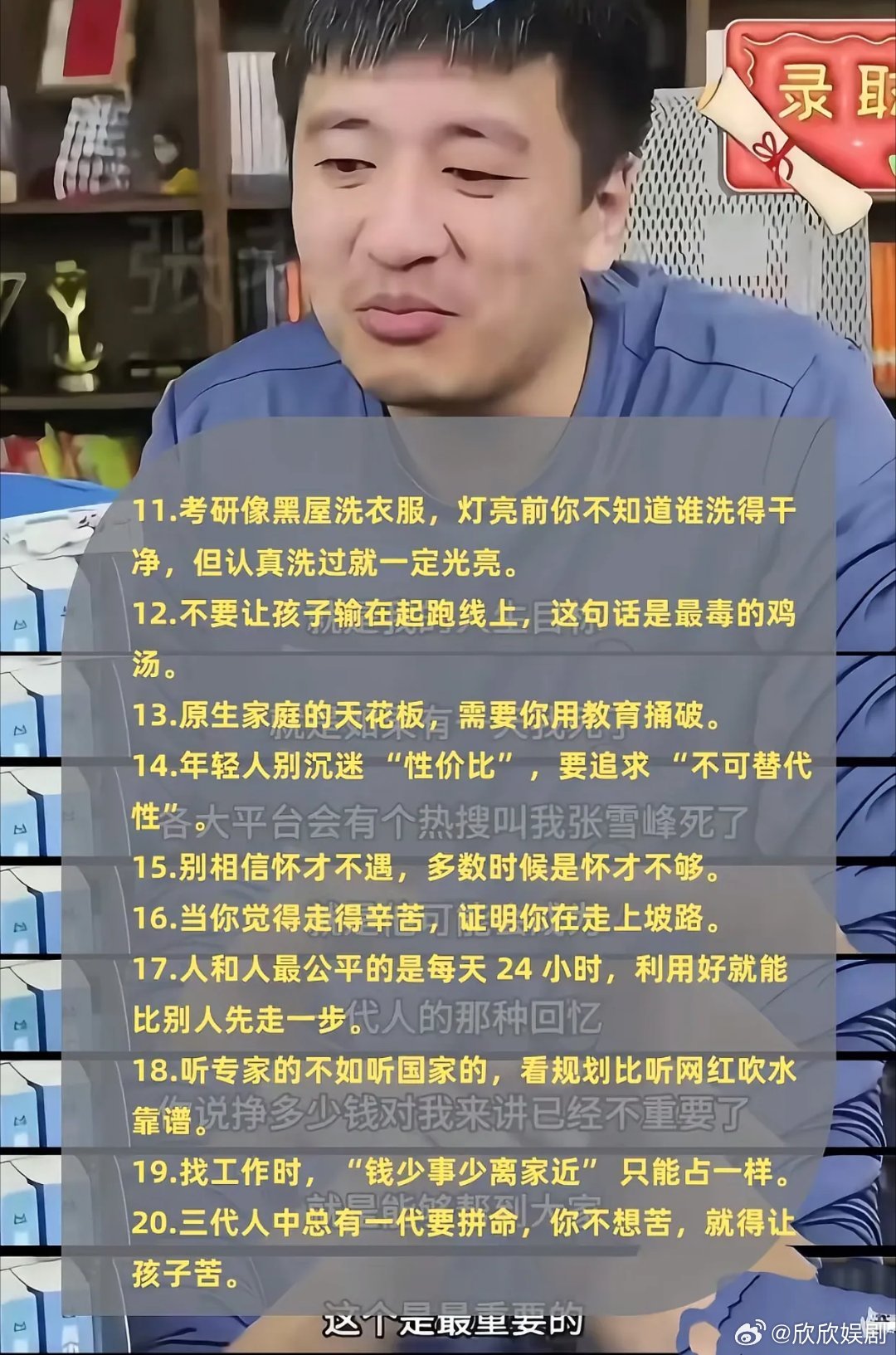 张雪峰离世,留下十句金句,关于人生与奋斗1、学习是你这辈子遇到过的最简单的事。2
