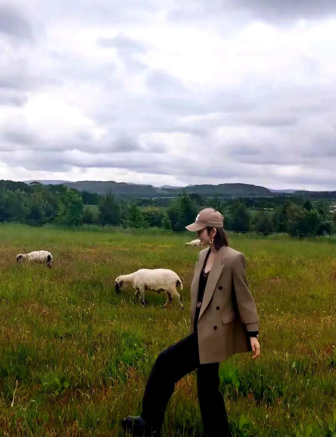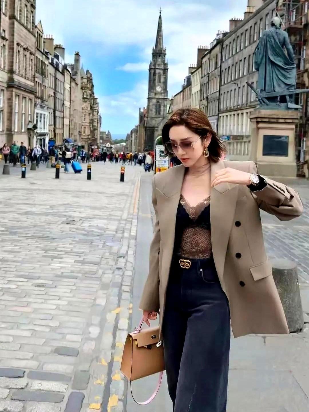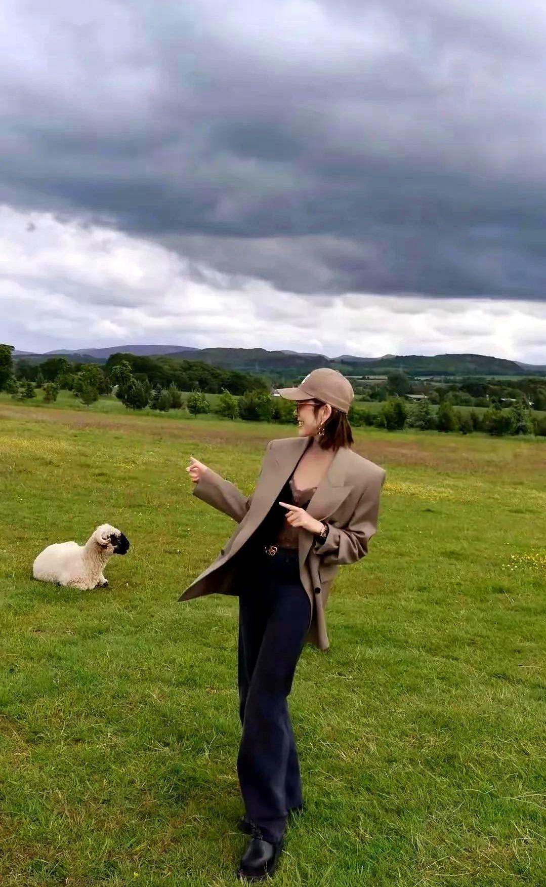 唐艺昕这组苏格兰出游照,简直是教科书级别的度假模版! 她穿着驼色西装配蕾丝内搭