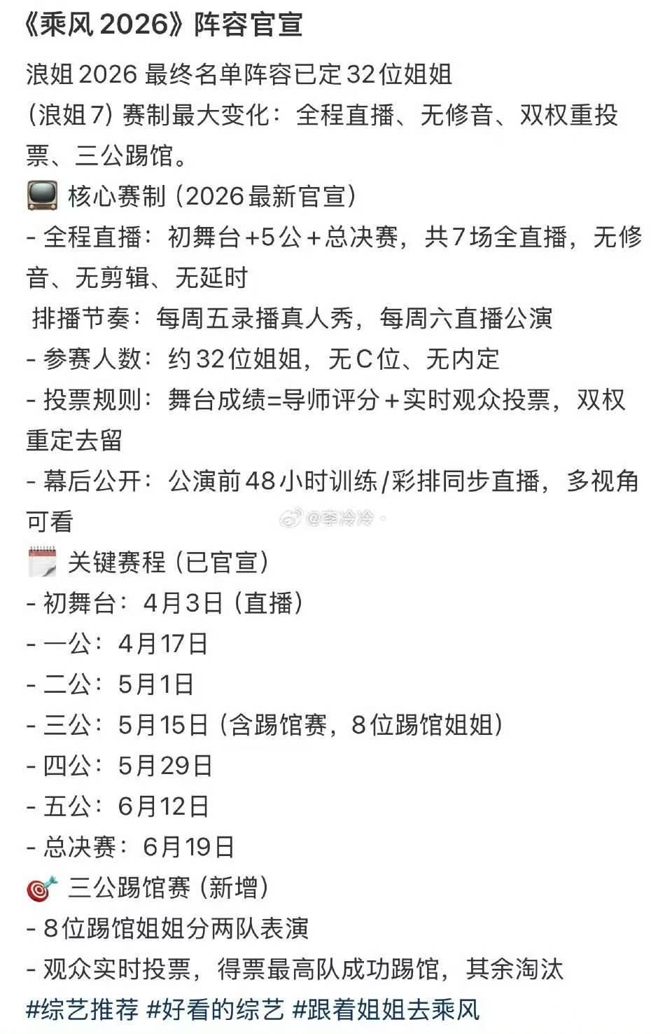 《浪姐7》32位姐姐名单已出: 演员组:李小冉、赵子琪、温峥嵘、唐艺昕、阚清子、