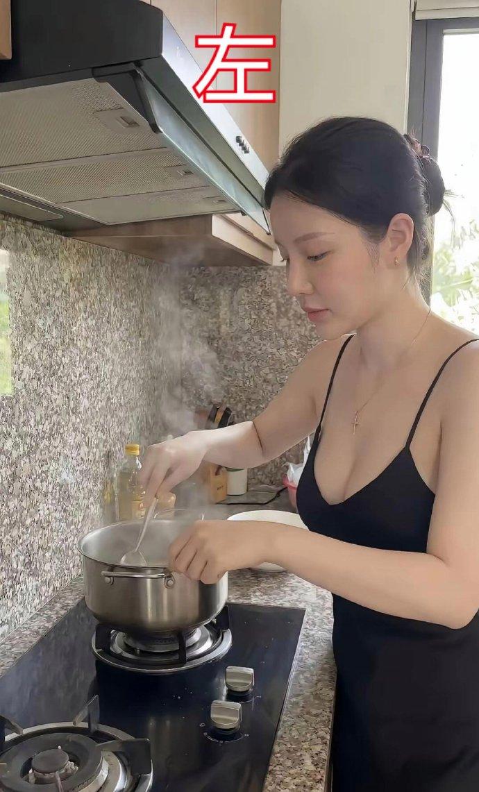 左:精致美女下厨,氛围感拉满; 右:我本人下厨,主打一个「接地气」。 别人做
