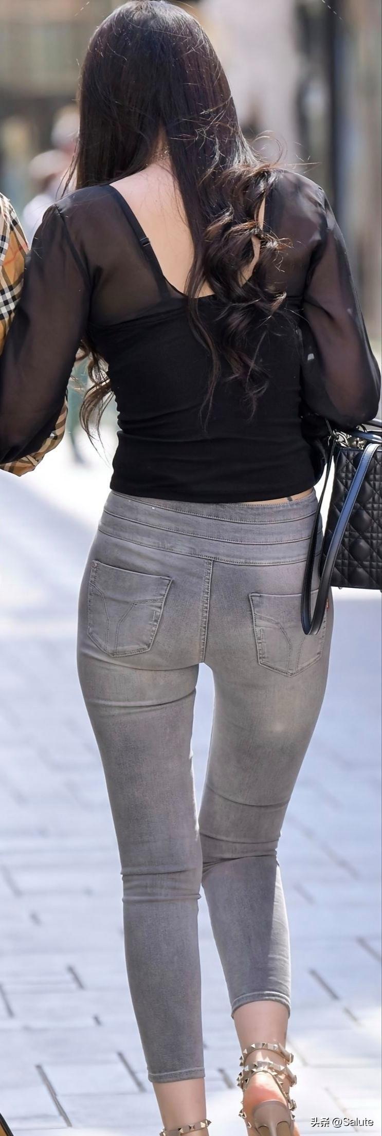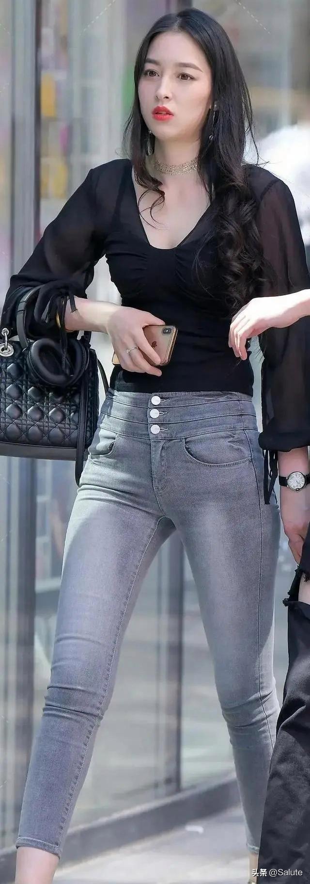 都市时尚风,黑色透视衫搭配牛仔裤,自信满满!