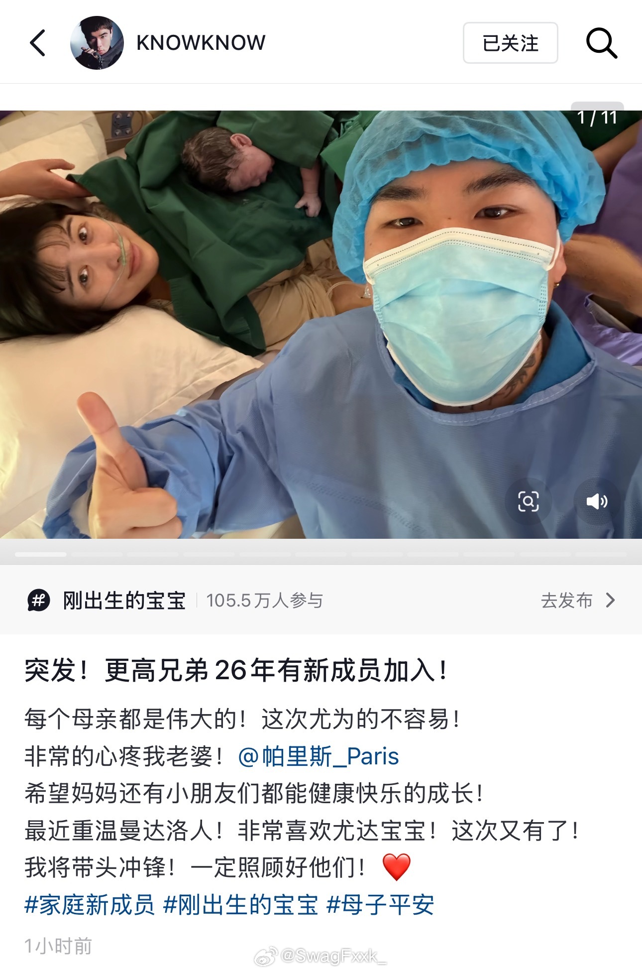 哇噻!KnowKnow和老婆帕里斯的二胎出生啦幸福幸福!