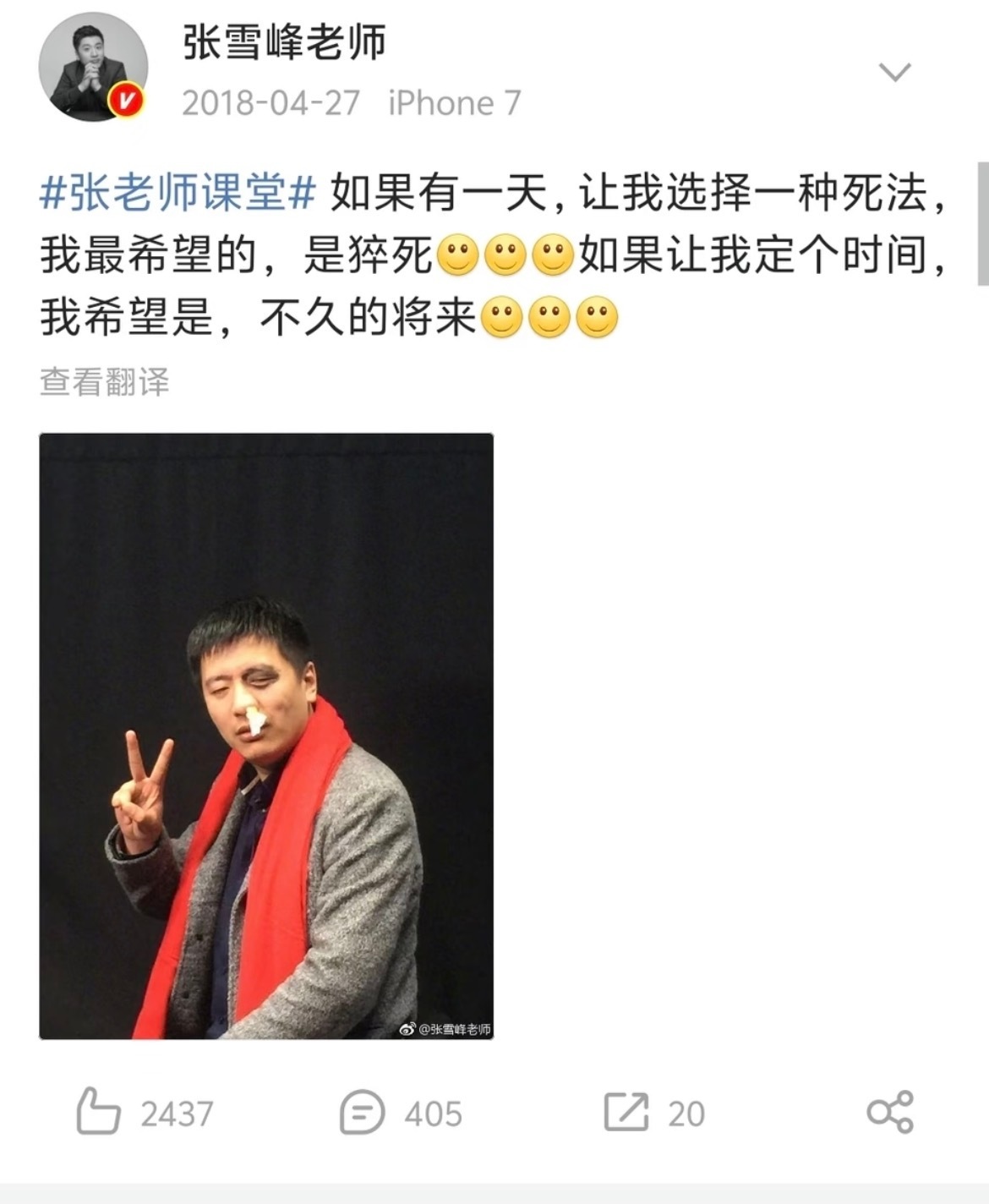 张雪峰18年曾说最希望的死法是猝死,希望在不久的将来。