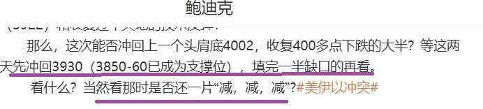 暂时放量滞涨,4000点依然有望! 【暂时放量滞涨,4000点依然有望!】上午按照计划继续反弹,且异常精准地冲到3930附近。我们给出的本轮反弹的第二目标接近完美实现。现在的问题,自然是能否执行回抽4002的头肩底的技术走势,收复这轮403点下跌的半数以上失地?        昨天说了,这首先要看场内是否还一片“减”声。从盘中情况看,“减”声不亚于昨天,而“加”声依然不多,而且权重走势较弱,尤其主创第一权重银行和电池,还逆势下跌。因此,起码可确定:本轮反弹还没结束。    但对于杀回4000点,依然不能确定。因为盘中出现以下几个问题“   1,成交量放大10%多,而上午振幅只有30几个点,低于昨天。也就是出现放量滞涨的态势。另外,上午没有有效回抽,直接高开高走,留下本轮反弹第一个缺口。须知,牛市可以有4个左右缺口,而反弹行情一般只有0-2个!   2,从主力行为看,昨天大涨,主力券商依然减空为主,但部分超级机构开始加空。上交所宽基ETF也出现赎回。这些显示主力机构对持续做多决心不大。   3,昨天接近95%个股上涨,今天再度接近90%,反弹势头过于猛烈,不可持续。尤其是部分大科技,拉抬过快,有诱多嫌疑。   4,3930以上,筹码压力开始加大。“减”声多有利于上涨持续性,但客观上,也给上涨增加了压力。  5,本周剩下两天多,是季度底压力最大的阶段,这次季度底叠加年报高峰和清明长假,多少有些重。     因此判断,大盘暂时进入整固阶段,暂时守住3900阵地,未来几天还能向上,4000点以上暂时无把握,但可以先看3950-60(最晚下周一),也就是先回到对这轮调整的反弹黄金分割位。 今日看盘