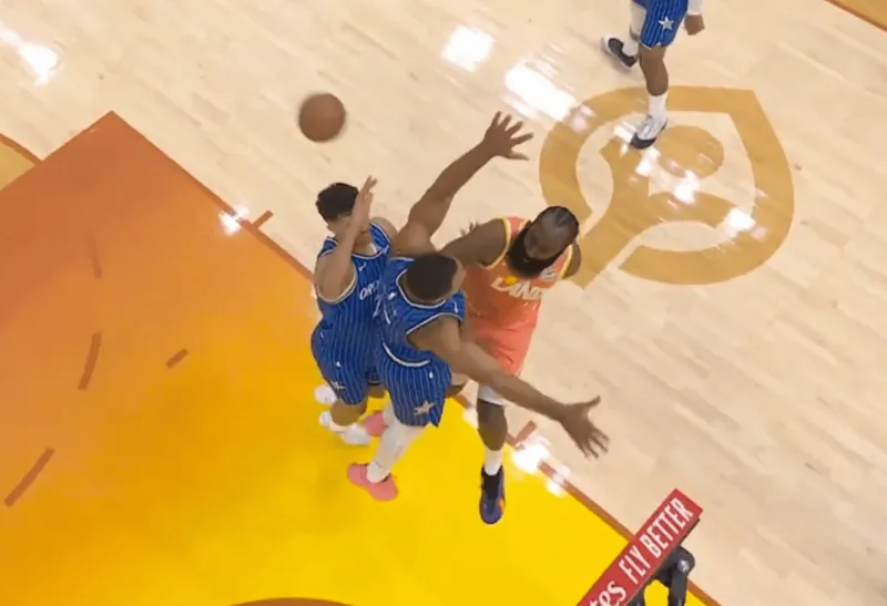 赛后,美媒MrBuckBuckNBA晒出哈登妙传斯特鲁斯三分命中的片段: