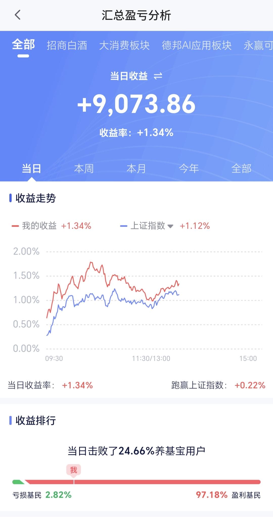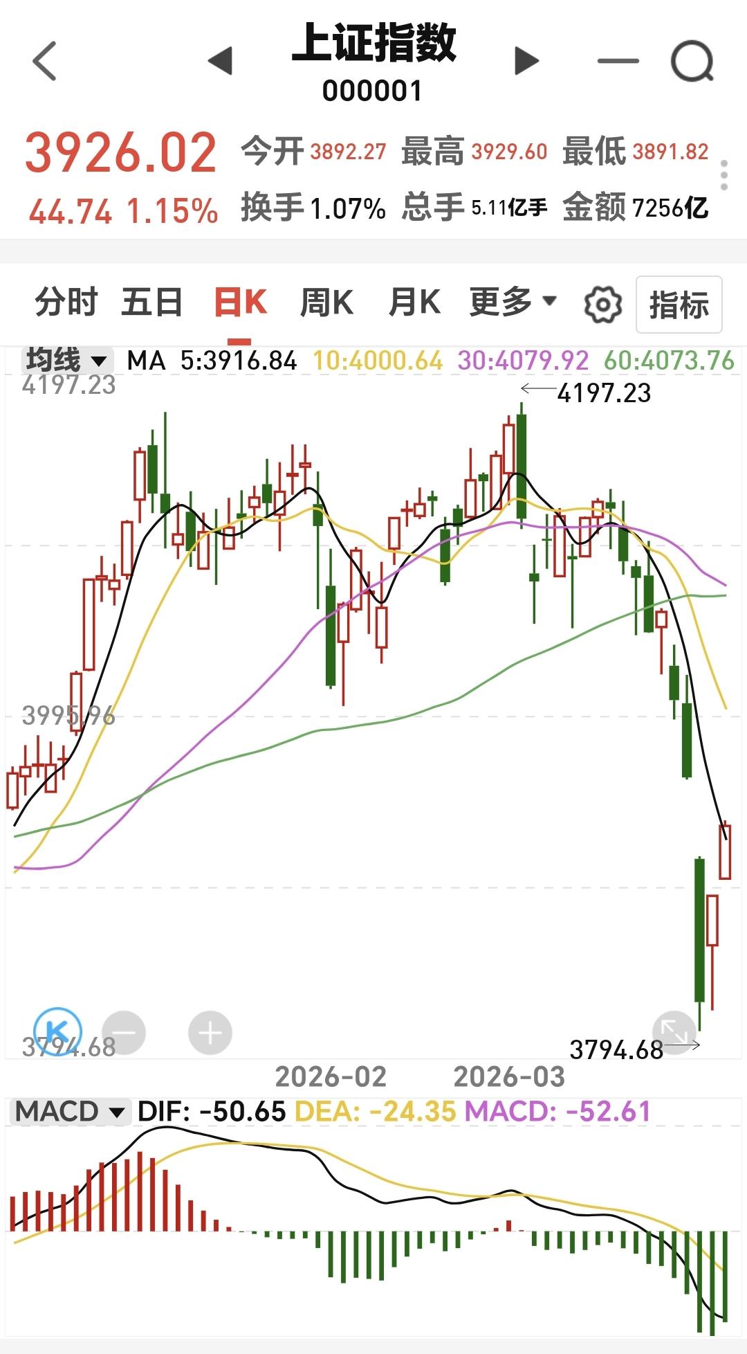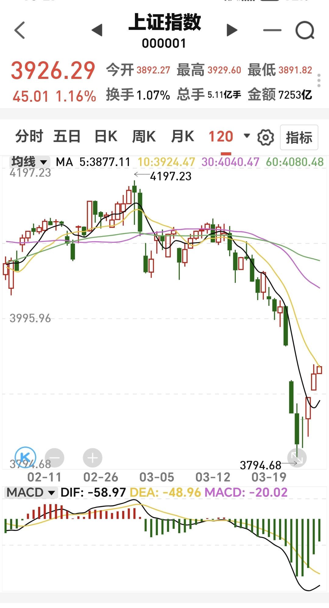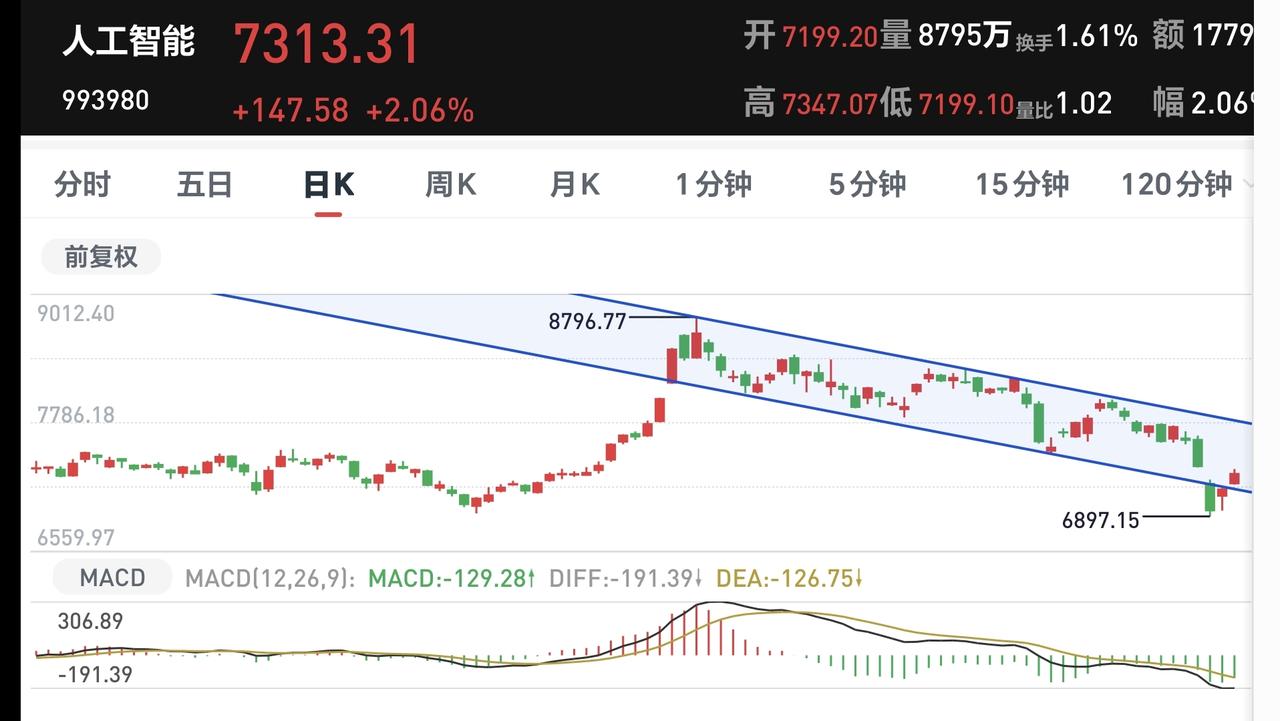 基金:进场可能性最大的地方在哪里 市场下午开盘以后小幅度震荡向上,创业板指上涨了2.05%,盘中点位3318点,上证指数上涨了1.14%,盘中点位3925点。 整个股票市场,上涨4883家,下跌540家,涨停94家,跌停5家,上涨家数多于下跌家数。 持有的基金中,盘中估值盈利金额最大的三个板块是:5G板块,创业板指,创新药板块,估值亏损的只有海外互联网板块,估值整体上涨了9073元。 整个基金市场,上涨19050家,下跌621家,上涨幅度超过5%的20家,没有下跌幅度超过5%的基金。 图10是今天板块的上涨排行榜,上涨幅度最大的三个板块是:机器人板块,黄金板块,电力板块,图11是今天板块的下跌排行榜,下跌幅度最大的三个板块是:煤炭板块,油气资源板块,海外医药板块,图12是今天基金的加仓和减仓人数,加仓5384392人,减仓3345212人,加仓人数超过了减仓人数。 整个市场主力资金净流入最多的三个板块是:高端制造板块,蓝筹策略板块,5G板块,主力资金净流出最多的三个板块是:军工板块,红利板块,石油石化板块。 1:下午黄色线还是在蓝色线上方,两条线之间的敞口还是保持的比较大,这样的情况下大幅度跳水的可能性很小,即使跳下去,也会拉回来。 2:两市累计成交16336亿,相比于昨天同期放量了11%,主力资金净流入189亿。 3:现在五天线位置是3916点,盘中点位3926点,是在五天线之上的震荡,收盘之前观察能不能收在五天线之上。 4:星期一有一个向下的跳,空缺口到现在为止没有能够全部回补,全部回补这个缺口之前都不能判断震荡调整已经结束,今天早盘有一个向上的跳空缺口,到现在为止也没有回补,在今天的缺口回补之前,都不要轻易判断反弹已经结束,今天向上跳空缺口的下沿是3881点星期一向下跳,空缺口的上沿是3955点,只要是在这两个点位之间震荡,就没有进行方向的选择。 5:人工智能板块现在盘中估值上涨了2.47%,是连续第二个交易日上涨,持有人数在所有板块当中排名第11位。 人工智能板块日线级别处于下跌通道内,星期一下跌跌破了这个下跌通道的下轨线,进入了加速下跌走势,经过两天的反弹,又回到了这个下跌通道内,但现在的日线级别还是处于下跌趋势中,日线级别的下跌趋势并没有改变,想进场的人需要耐心等待这样的下跌趋势被改变,只有下跌趋势被改变了以后,才可以考虑要不要进场。 人工智能板块周线级别上周跌破了上涨通道的下轨线,本周是在上涨通道的下方震荡,连续两个交易日的上涨并没有能够重新回到上涨通道内,现在还是处于上涨趋势破位的状态,长线持有的人需要注意风险。 6:稀土永磁板块现在盘中估值上涨了2.57%,是连续第二个交易日上涨,持有人数在所有板块当中排名第四位。 稀土永磁板块日线级别处于下跌通道内,星期一的下跌跌破了这个下跌通道的下轨线,今天上涨又回到了这个下跌通道内,这只是表明加速下跌的可能性在缩小,但并没有改变日线级别的下跌趋势,短线持有的人还是需要注意风险。 稀土永磁板块周线级别上周跌破了上涨通道的下轨线,本周是在上涨通道的下方震荡,连续两个交易日的上涨并没有能够重新回到上涨通道内,现在还是处于周线级别上涨趋势破位中,长线持有的人需要注意风险。 近期市场的上涨,就看能不能突破3955点,市场如果震荡,就看会不会跌破3881点,如果在这两个点位之间震荡,就喝茶看戏,如果上涨突破3955点,就看成交量能不能持续放量,如果不能持续放量,3996点应该是反弹的高点区域附近,如果下跌跌破3881点,市场就进入了五浪调整,五浪调整的低点在理论上会低于星期一的最低点,那个低点是我们重点要注意的地方,也就是我们出手可能性最大的地方,从今天的情况看,我们还需要耐心等待。 置顶的是我参加活动的一篇文章,大家可以去看一下有没有点赞,没有点赞的人帮忙点一个赞,谢谢大家的支持。 今天究竟应该怎么办?我会在评论区留言。