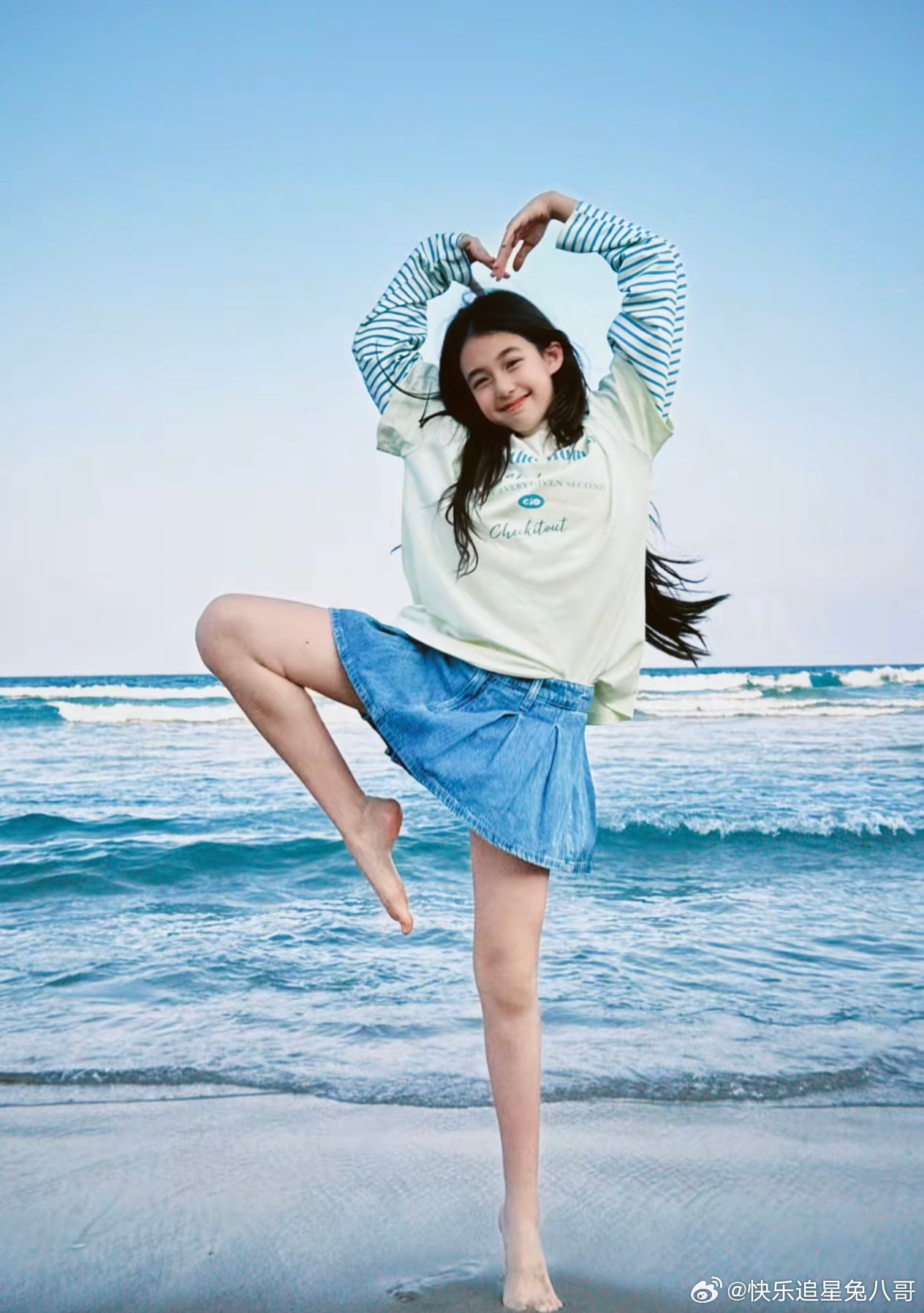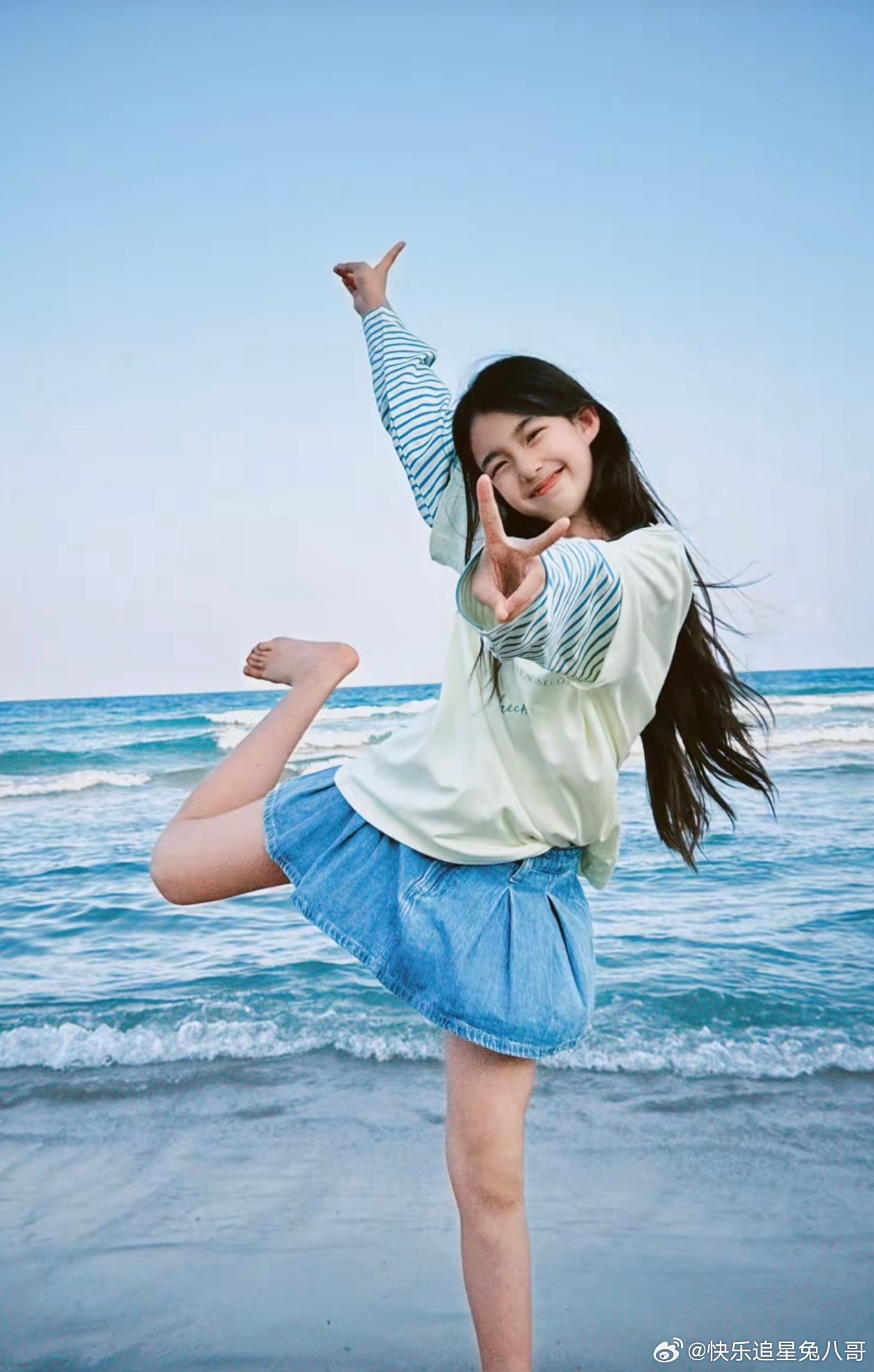 小泡芙颜值小泡芙好漂亮 小泡芙晒海边美照,俏皮比耶好漂亮