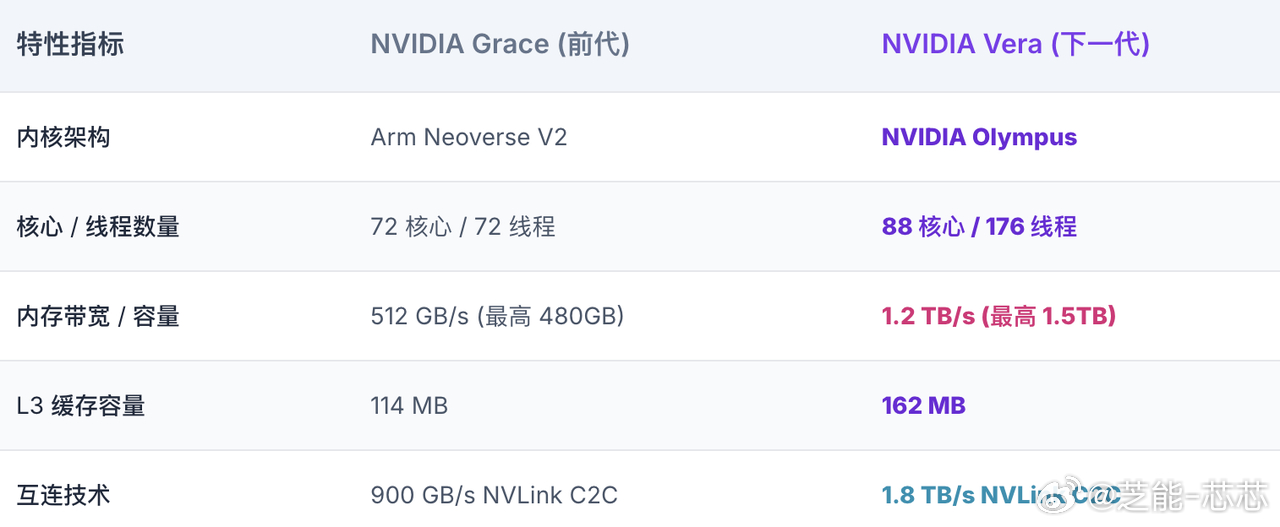 Vera 完全自研架构,专为 AI 服务器调度瓶颈优化,性能、成本、系统协同全面拉满。