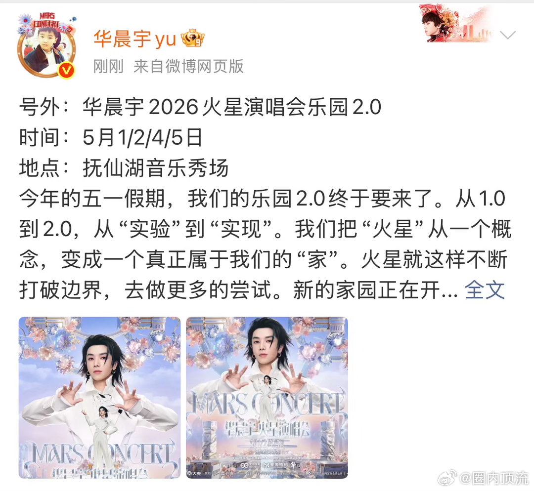 华晨宇2026火星演唱会乐园2.0 华晨宇2026火星演唱会乐园2.0来了,五一云南,太期待了 华晨宇火星乐园2.0真的来了