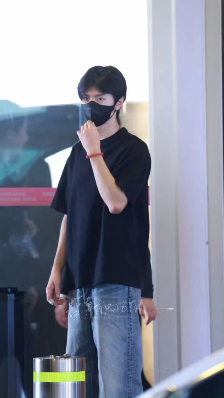 陈哲远深圳出发录制跑男陈哲远出发跑男录制顺毛小狗启程啦✈️!黑T牛仔加利落短发,