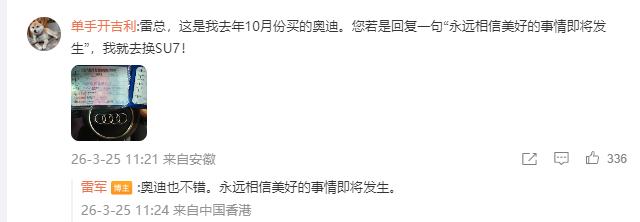 雷总一句话卖出一台车? 3月25日,有粉丝给雷军留言,若雷总回复:“永远相信美