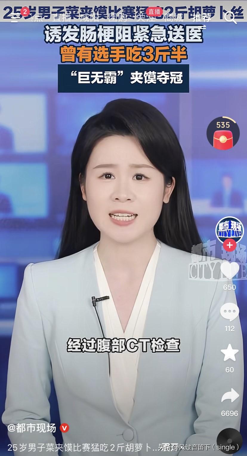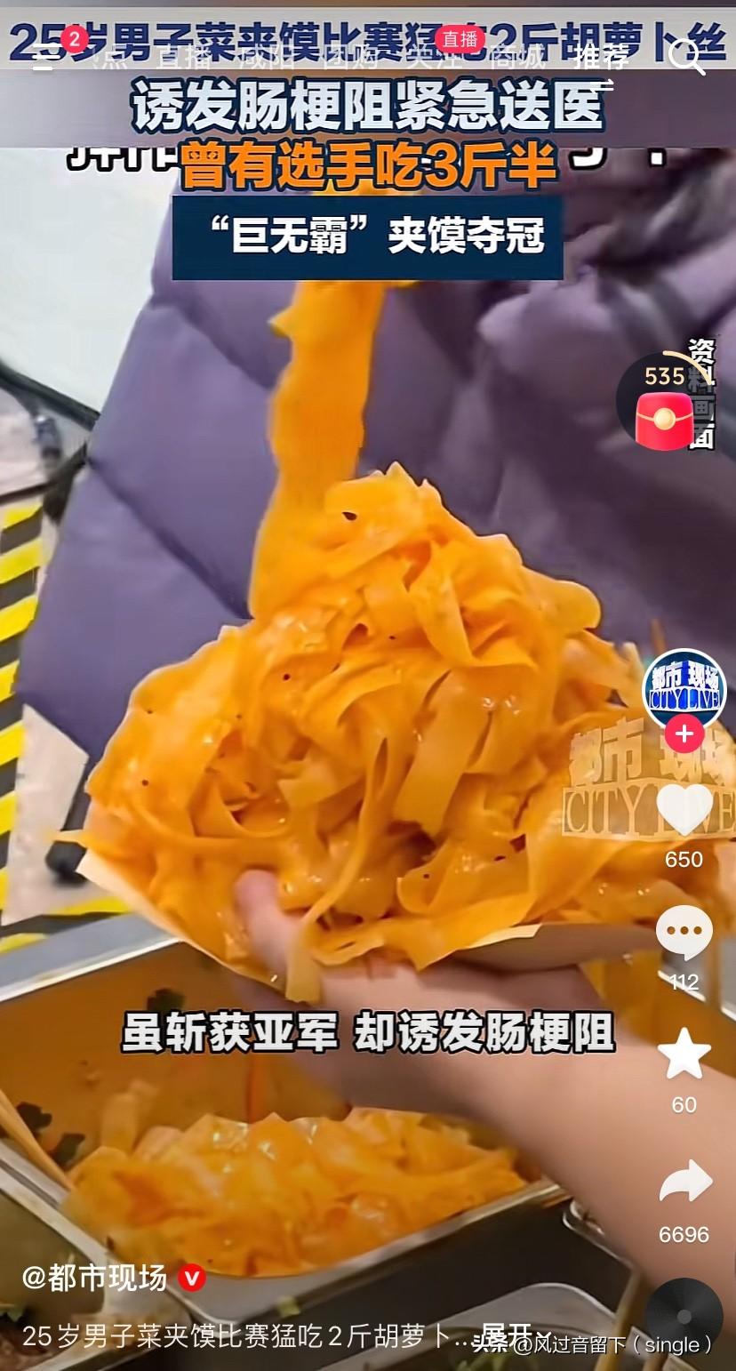 看来这个冠军压力更大! 25岁小伙参加菜夹馍大赛,猛吃2斤胡萝卜丝,诱发肠梗阻,