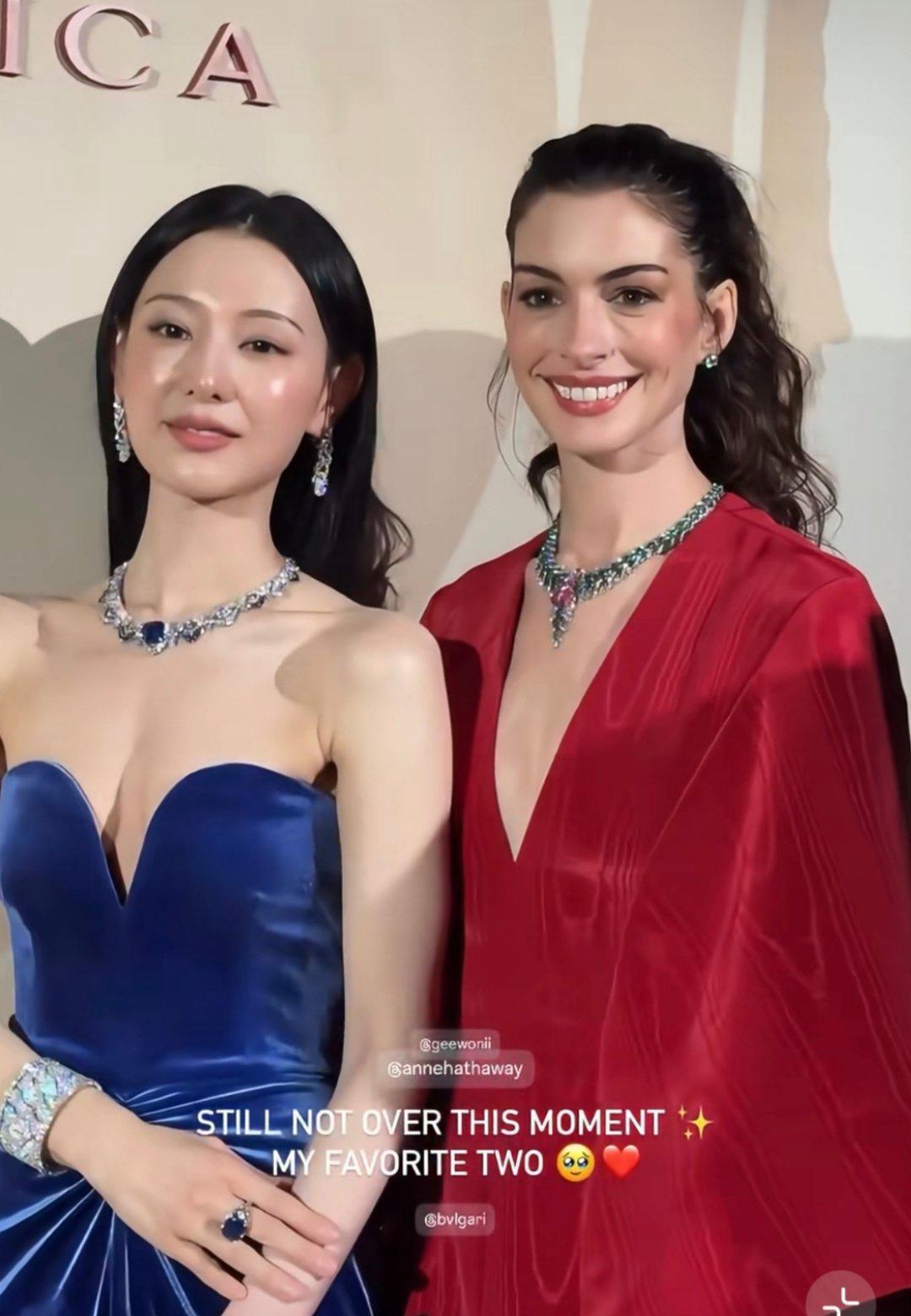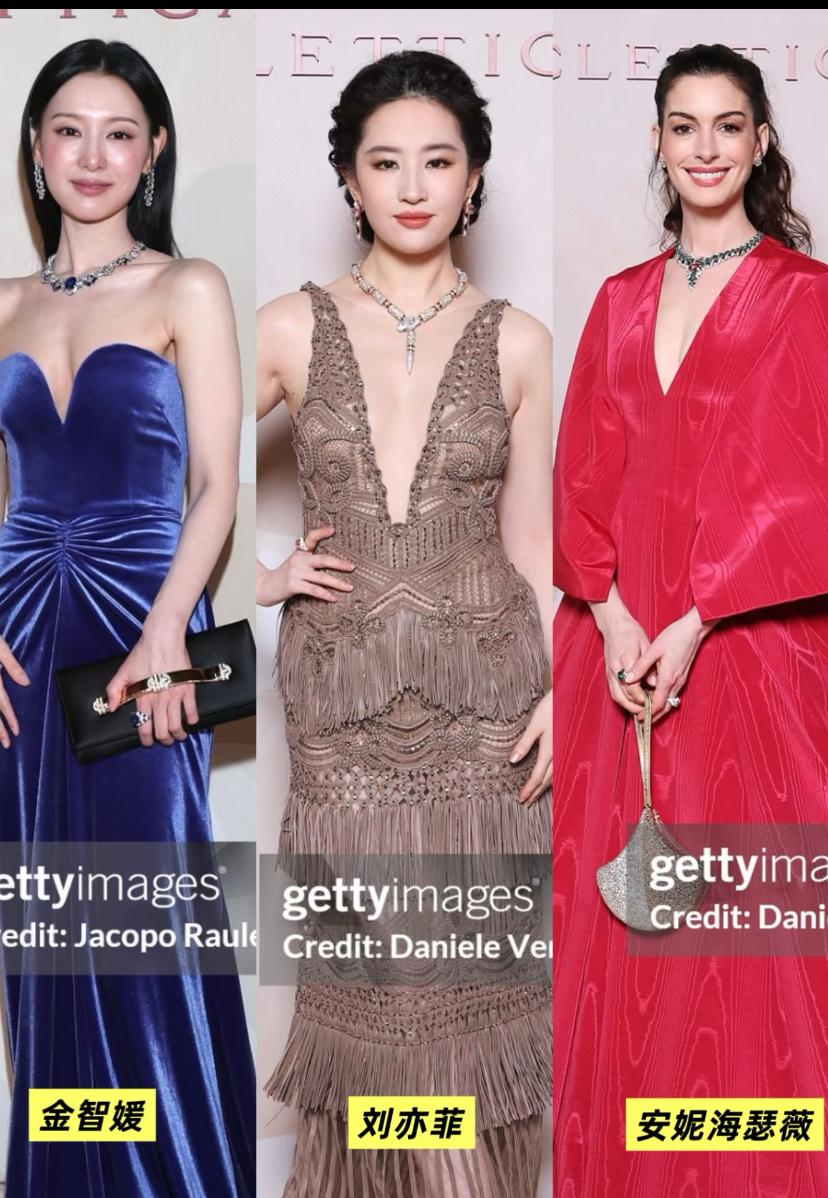 看刘亦菲和金智媛的这个同框,彻底对韩式妆容祛魅了 以前总觉得韩式“水光肌”挺好的,清透感十足,可这次真有点原形毕露的意思了。 就说金智媛吧,底子其实不差,但那水光肌在大场面下,油光感过于强烈,妆面显得脏脏的,甚至有点吓人。 再看刘亦菲,普普通通干净清透的妆容,气质一下子就凸显出来了。 这一对比,高下立见。 只能说韩式妆容在小屏幕加滤镜还能蒙混过关,到了强光+高清镜头下压根撑不住。 想想金智媛都被化成这样,一般人化韩式妆就更难驾驭了。