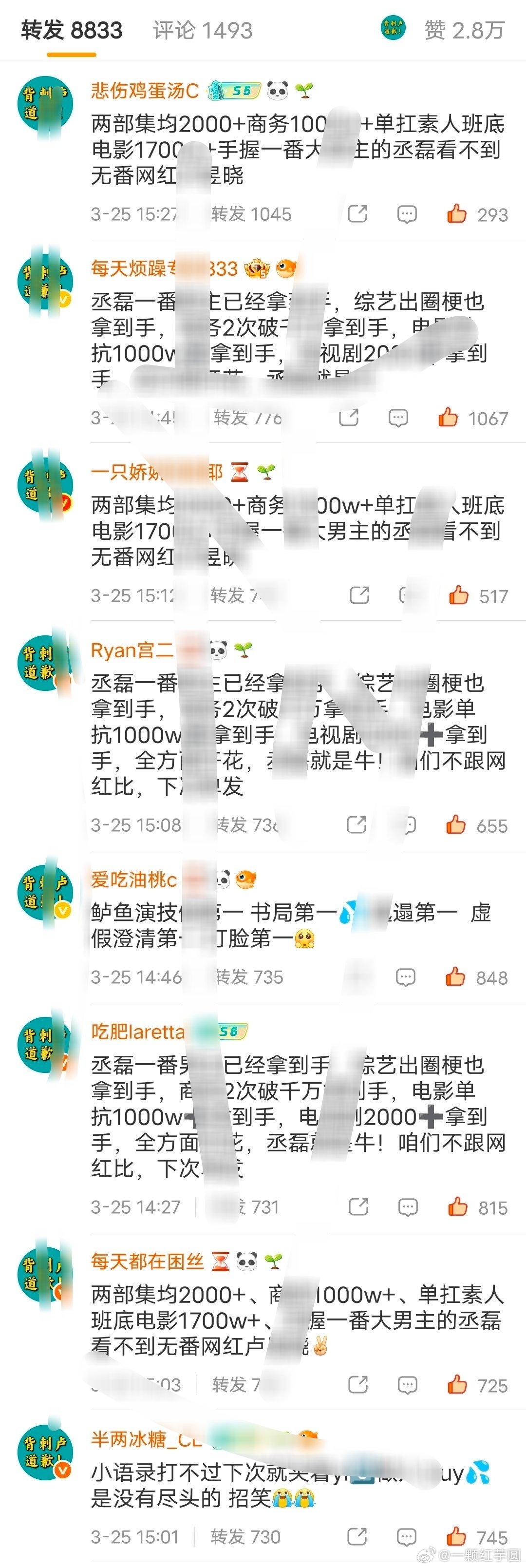 丞磊 粉丝给卢昱晓粉丝排字了