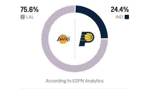 明天打联盟垫底球队步行者,湖人最新胜率已公布,居然不是碾压,差的太多了! 明天湖人要客场挑战步行者,这也是湖人6连客的最后一场,也是湖人最轻松的一场比赛。 因为步行者现在已经是联盟垫底球队,胜负对他们而言无关紧要,现在他们的战绩是15胜56负,比西部的过往还要差,所以这场比赛肯定是湖人势必要拿下的比赛。要不然后面的掘金真的要反超他们了。 而最新ESPN给出的最新胜率中,湖人赢球的概率是75.6%,步行者赢球的概率是24.4%。 居然不是碾压式的,湖人赢球的概率还是给的太低了,截止目前为止,湖人还没有给出最新的伤病名单,只知道上场没打的八村还有斯玛特都是小概率出战,至于三巨头老詹肯定上,东子和里弗斯休不休那就不知道了。