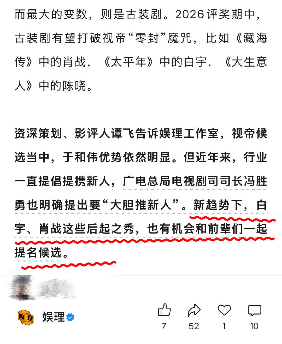 业内谈肖战杨紫白玉兰得奖几率 《藏海传》能让肖战拿下白玉兰吗?谭飞说“行业一直提倡提携新人,广电总局也明确提出要大胆推新人。肖战这些后起之秀有机会和前辈们一起提名候选。”古装剧能翻身就看这次了! 前哨奖与白玉兰关联度有多大