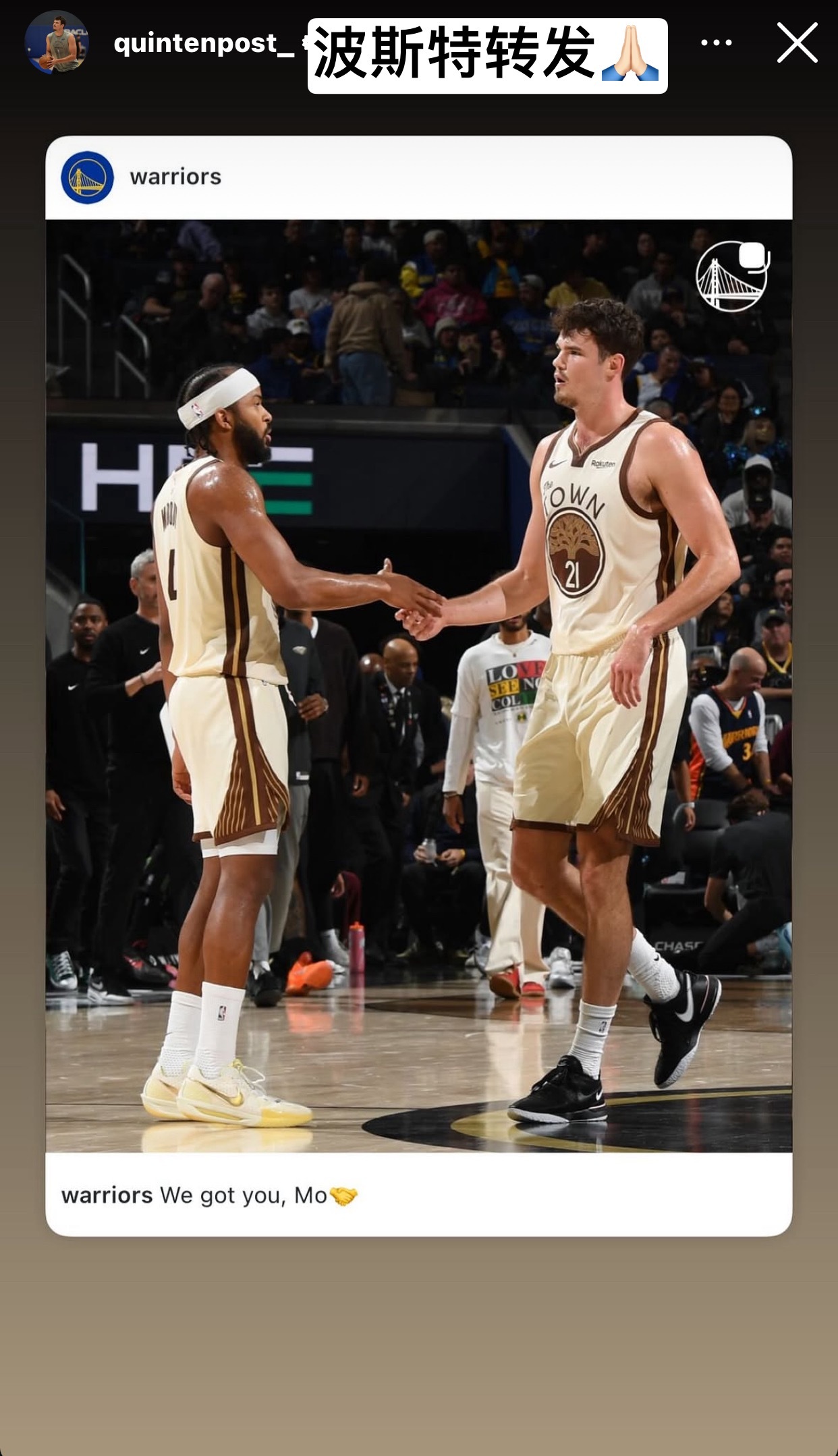 明日上午十点,主场战篮网,兄弟们加油!(图2到5,都是队友在各自社媒上为穆迪打气