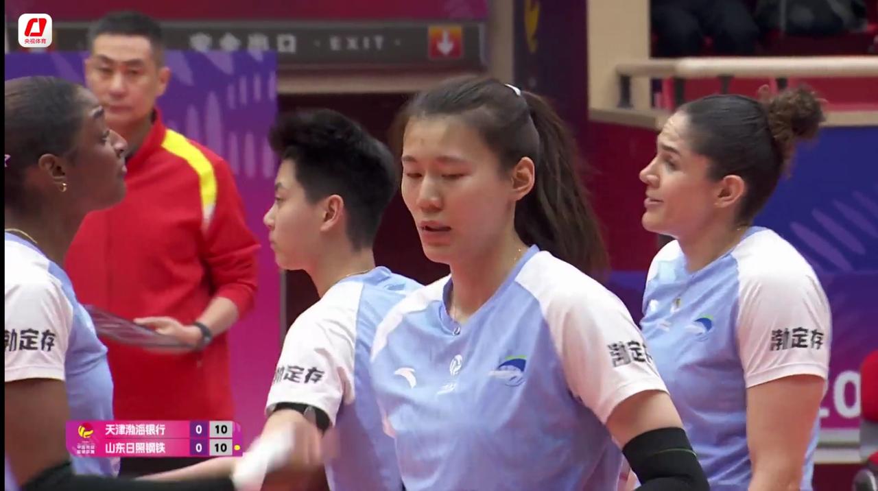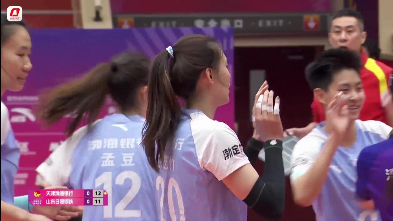 【女排超级联赛】铜牌决赛(1):天津——山东 实时战况: 3月25日晚19:00时,女排超级联赛铜牌决赛天津——山东的第一场比赛在天津队主场准时开打。第一局开始,0:1,李晨暄。0:2,山东打探头。1:2,刘美君。1:3,郭湘玲。1:4,1:5,天津快攻被拦。天津暂停。2:5,外援。3:5,4:5天津拦网、发球得分。4:6,5:6,孙杰发球出界。6平,天津追平比分。7:6,李晨暄扣球出界,天津领先。7平,郭湘玲。8平,10:8,王艺竹、外援分别得分,天津领先,山东暂停。10平,11平,12平,14:12,天津领先。14:13,李晨暄轻打。14平,杨涵玉打探头。14:15,杨涵玉快攻。天津二次暂停。14:16,山东领先。15:16,15:17,李晨暄后攻。孙杰发球下网,16:17。16:18,郭湘玲。16:19,山东领先。16:20,郭湘玲发球得分。17:20,17:21,17:22,杨涵玉发球得分。18:22,外援。18:23,18:24,李晨暄。山东局点。19:24,19:25,山东胜第一局,大比分1:0,山东领先! 第二局比赛正在进行中……