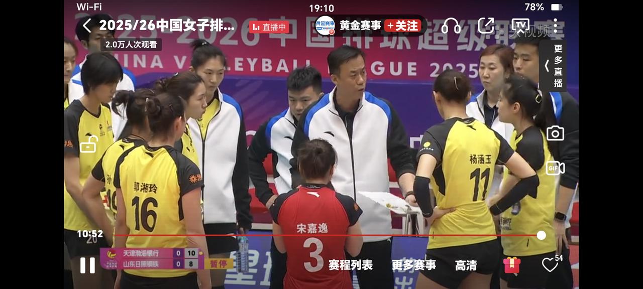 女排排超联赛铜牌之战,天津女排对阵山东女排,天津女排全主力出战,山东女排郭湘玲首发,天津女排7:7,到8:8,王艺竹扣球得分9:8,马丁背飞得分10:8,山东女排叫暂停了,杨涵玉背飞得分10:9,李晨瑄扣球得分10:10,杨涵玉发球失误11:10,马丁发球,李晨瑄扣球得分11:11,随着张世琦拦网得分,李晨瑄扣球得分,比分12:12刘美君扣球得分13:12,王艺竹发球得分14:12,李晨瑄扣球得分14:13,今天李晨瑄扣球发挥出色。杨涵玉连续快球得分14:15,天津女排叫暂停了。天津女排 山东女排