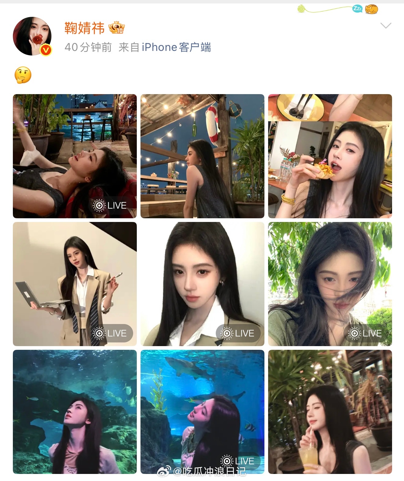 鞠婧祎发了一个表情包 鞠婧祎微博营业啦,配文了一个思考表情包,好有生活气息呀,哇