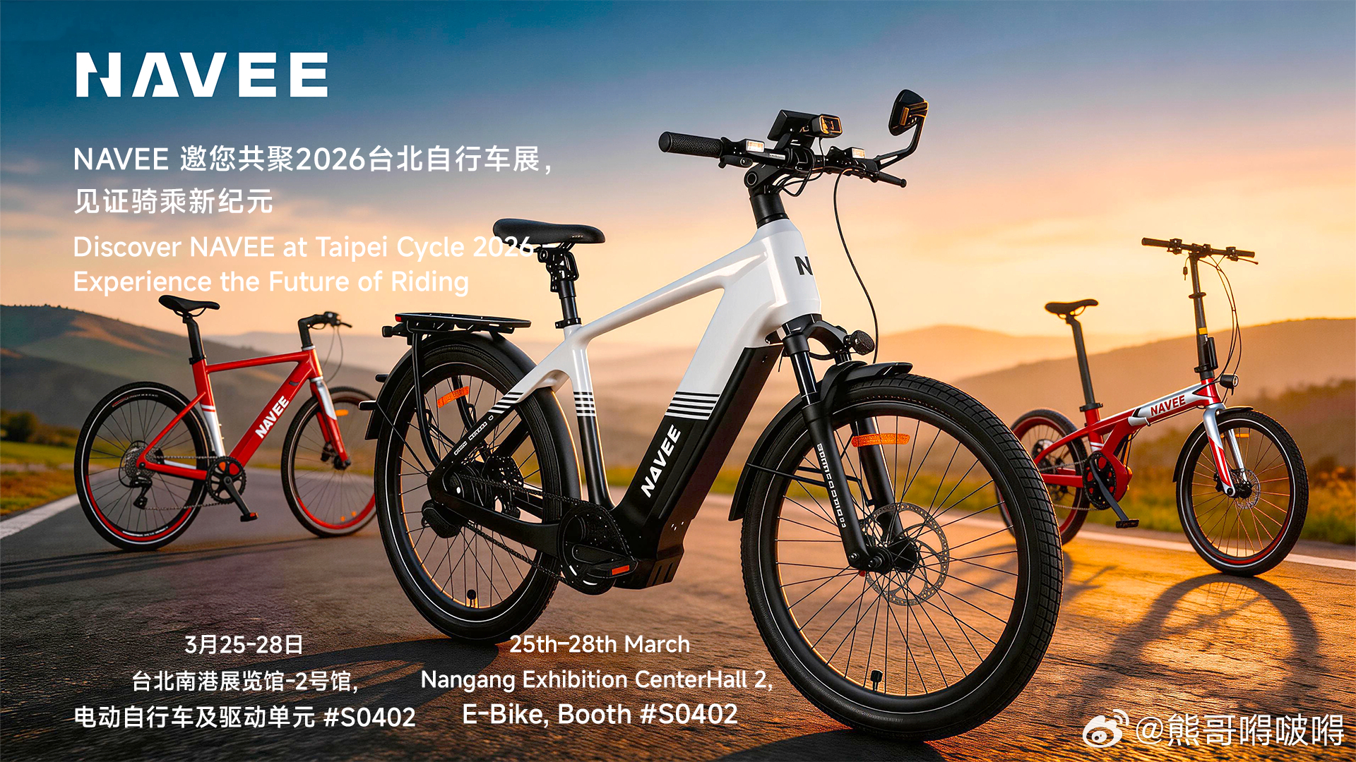 NAVEE正以欧洲与美洲为核心加速全球化布局,稳居欧洲短交通市场前三、北欧第一,并已在美国硅谷完成前沿技术展示。品牌强调,产品创新不应停留于参数叠加,而应回归出行本质,将速度、安全、稳定与服务作为底层设计逻辑。从城市竞速到全地形探索,NAVEE正以技术融合与场景拓展,重塑智能户外出行边界,开启骑行新纪元。 NAVEE坦途科技台北自行车展