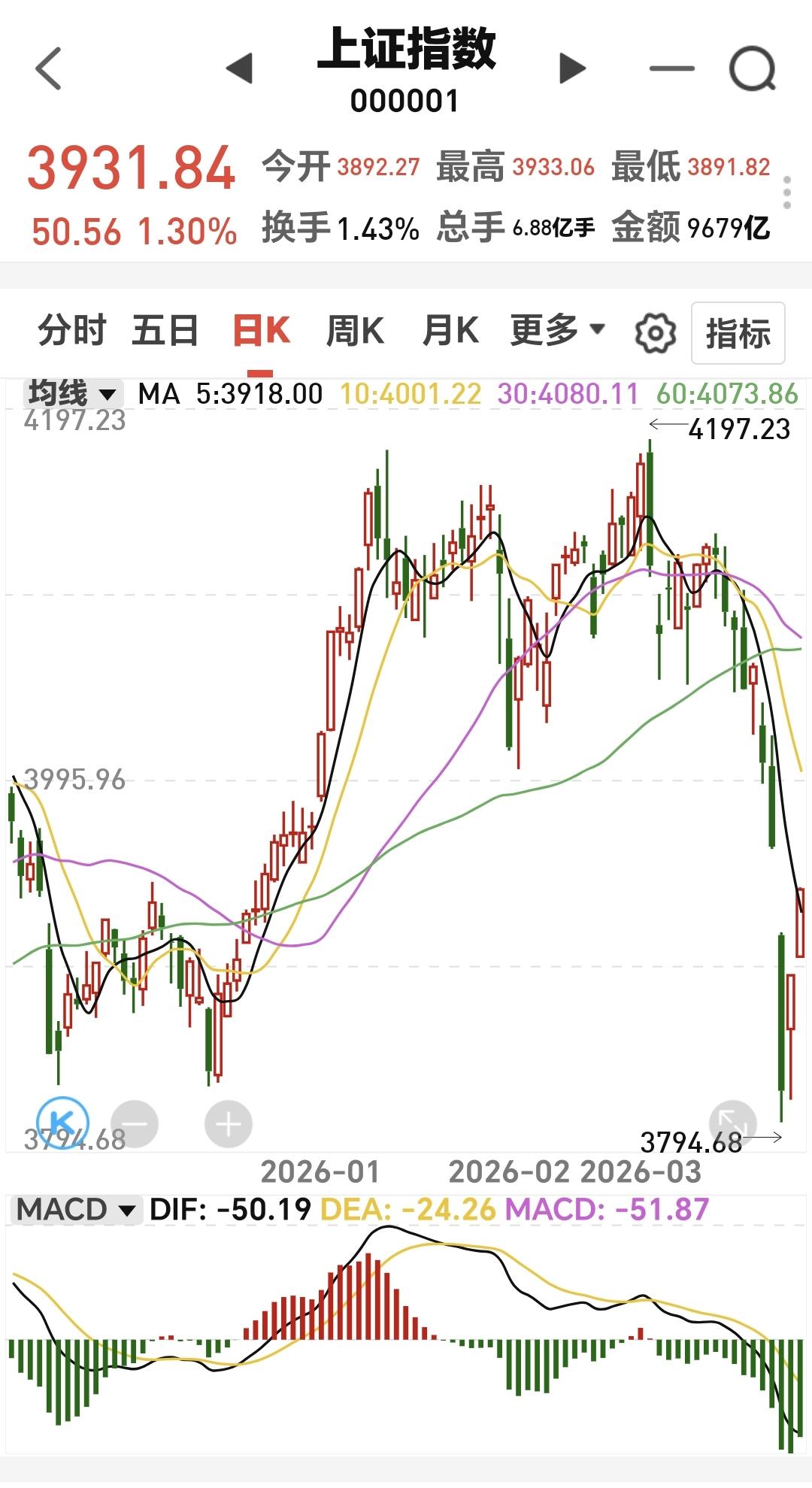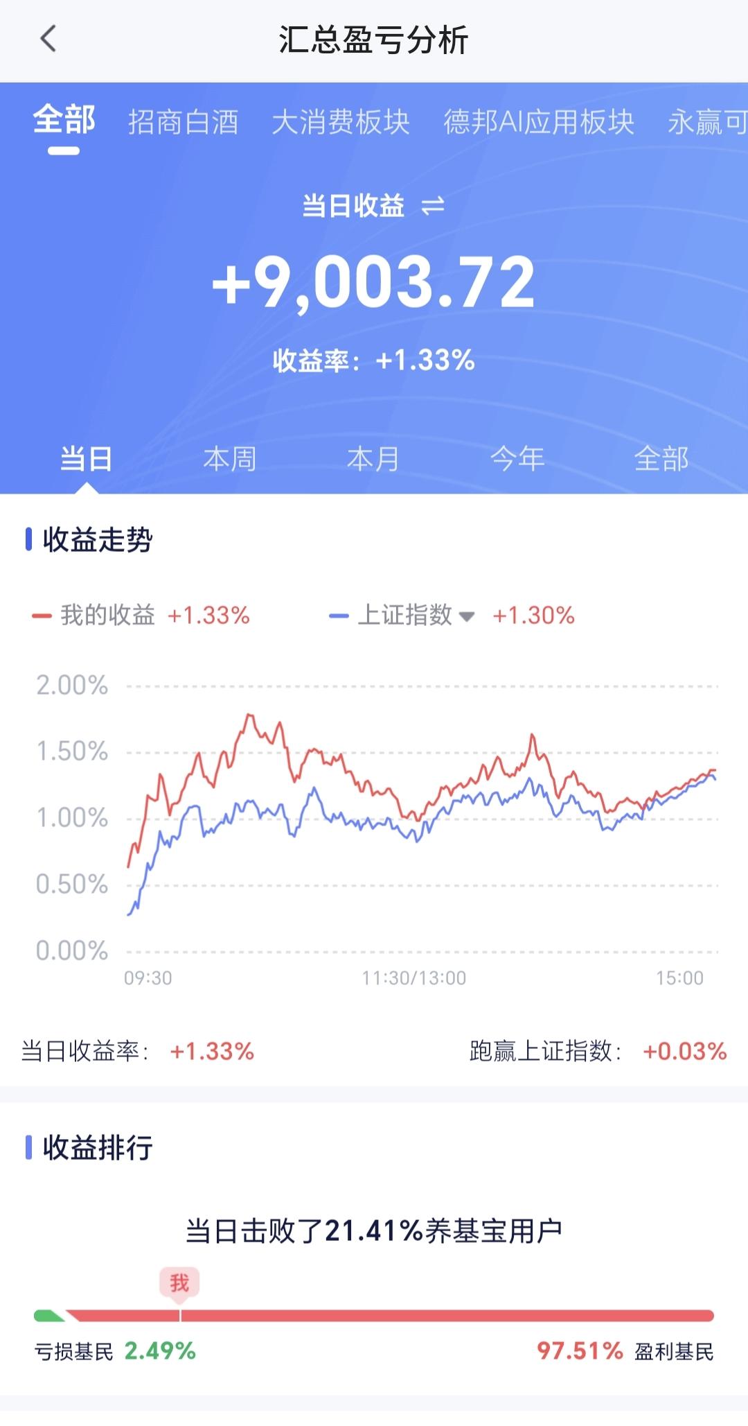 基金:星期四会冲高回落的原因 市场在周一大跌以后,连续强势反弹了两个交易日,今天三大指数又是大涨,创业板指上涨了2.01%,收于3316点,上证指数上涨了1.30%,收于3931点。 整个股票市场,上涨4877家,下跌564家,涨停107家,跌停6家,上涨家数多于下跌家数。 持有的基金中,下午收盘的时候,估值盈利金额最大的三个板块是:5G板块,证券板块,创业板指,估值盈利金额最小的三个板块是:AI应用板块,可控核聚变板块,军工板块,估值整体上涨了9003元。 整个基金市场,上涨18985家,下跌675家,上涨幅度超过5%的11家,没有下跌幅度超过5%的基金。 图10是今天板块的上涨排行榜,上涨幅度最大的三个板块是:黄金板块,机器人板块,存储芯片板块,图11是今天板块的下跌排行榜,下跌幅度最大的三个板块是:煤炭板块,油气资源板块,汽车整车板块,图12是今天基金的加仓和减仓人数,加仓22720113人,减仓30763811人,加仓人数少于减仓人数。 整个市场主力资金净流入最多的三个板块是:高端制造板块,5G板块,大科技板块,主力资金净流出最多的三个板块是:光伏板块,绿色电力板块,光伏设备板块。 1:今天又是黄色线,在蓝色线上方两条线之间的场合又是比较大,这也是今天能够持续反弹的主要原因。 2:今天两市累计成交21798亿,相比于昨天放量了5%,但中午收盘的时候放量幅度是11%,也就是下午是缩量状态,这样缩量上涨的持续性不强,但由于连续两天的快速上涨,这个上涨会有一定的惯性,这个惯性的上涨,我预计会持续到明天下午两点钟左右,明天下午两点左右大概率会走震荡向下的走势,明天大概率是一个冲高回落的走势。 3:收盘的时候五天线位置是3918点,收盘点位是3931点,收在五天线之上,明天注意观察五天线的得失,特别是收盘的时候,能不能继续收在五天线之上。 4:星期一的时候有一个向下的跳空缺口,今天有一个向上的跳空缺口,今天盘中已经部分回补了,星期一向下的跳空缺口,但并没有能够全部回补,这个向下跳空缺口的上沿是3955点,明天盘中上冲的时候观察能不能全部回补这个缺口,如果能够全部回补这个缺口,二次下探的深度就不会很深,如果不能全部回补这个缺口,二次下单的深度就需要谨慎。 5:创新药板块日线级别处于下跌通道中,连续两个交易日的上涨并没有能够突破这个下跌通道的上轨线,连续两个交易日的上涨并没有能够改变日线级别的下跌趋势,想进场的人还是要耐心等待。 创新药板块周线级别处于短期下跌通道中,这个下跌通道的时间段与日线级别的时间段是一样的,所以,只要参考日线级别的技术参数就可以了,想进厂的人也是耐心等待上涨突破日线级别下跌通道上攻线的时候,再考虑要不要进场。 6:存储概念板块日线级别处于下跌通道中,连续两个交易日的上涨也没有能够突破日线级别下跌通道的上轨线,连续两个交易日的上涨没有能够改变日线级别的下跌趋势,短线持有的人还是需要注意风险。 存储概念板块周线级别处于上涨通道中,本周下跌的最低点就是在上涨通道的下轨线上,现在的位置距离上涨通道下轨线并不远,近期还是要观察会不会有效破位这个下轨线,但只要能够保持在上涨通道内震荡,长线持有的人都可以继续持有。 明天上午看继续上涨,主要观察下午两点钟之后会不会回落,如果开始回落,有可能就开启了五浪下跌,五浪下跌在理论上是要低于三浪下跌低点的,就是在理论上要低于星期一的最低点,当然,这只是预测,我们的操作是会根据实际情况来做出即时的判断,有观点以后我会第一时间分享给大家。 置顶的是我参加活动的文章,大家可以进去看一下有没有点赞,如果没有点赞的人帮忙点个赞,谢谢大家的支持。