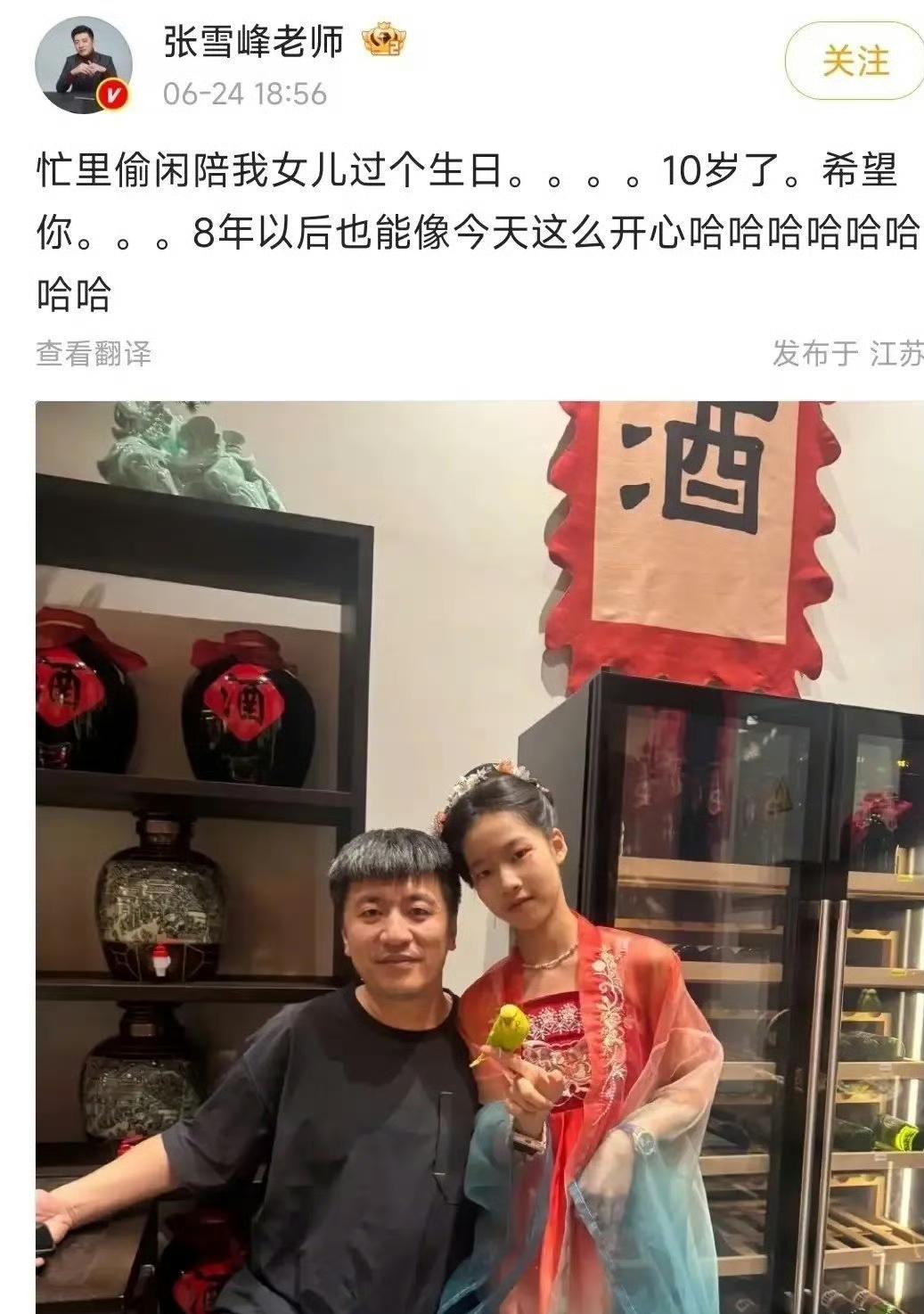 张雪峰的思想真是开放,明明这么有钱,但是还是坚持只生一个女儿,怪不得他这么宠爱女儿张姩菡! 张雪峰在2021年成立了苏州峰学蔚来教育科技有限公司,注册资本1000万元,经过几年的努力,光员工就有上千人,虽然公司没有公布过真实的财务报表,但是知情人士表示,公司一年盈利至少几个亿! 大家也知道,这样的线上咨询公司,净利润是非常可观的,也就是说张雪峰老师早就实现财务自由了! 但是,他自从2015年女儿张姩菡出生后,就再也没有生过二胎、三胎。 他自己曾坦言,自己没有“重男轻女”的思想,不想再要孩子的原因,是他不想把对女儿的爱分享出去,只想独宠女儿! 还有一点就是,他认为现在一家三口的生活,过得非常惬意和温馨,不想因为“生二胎”去打破这个平衡!