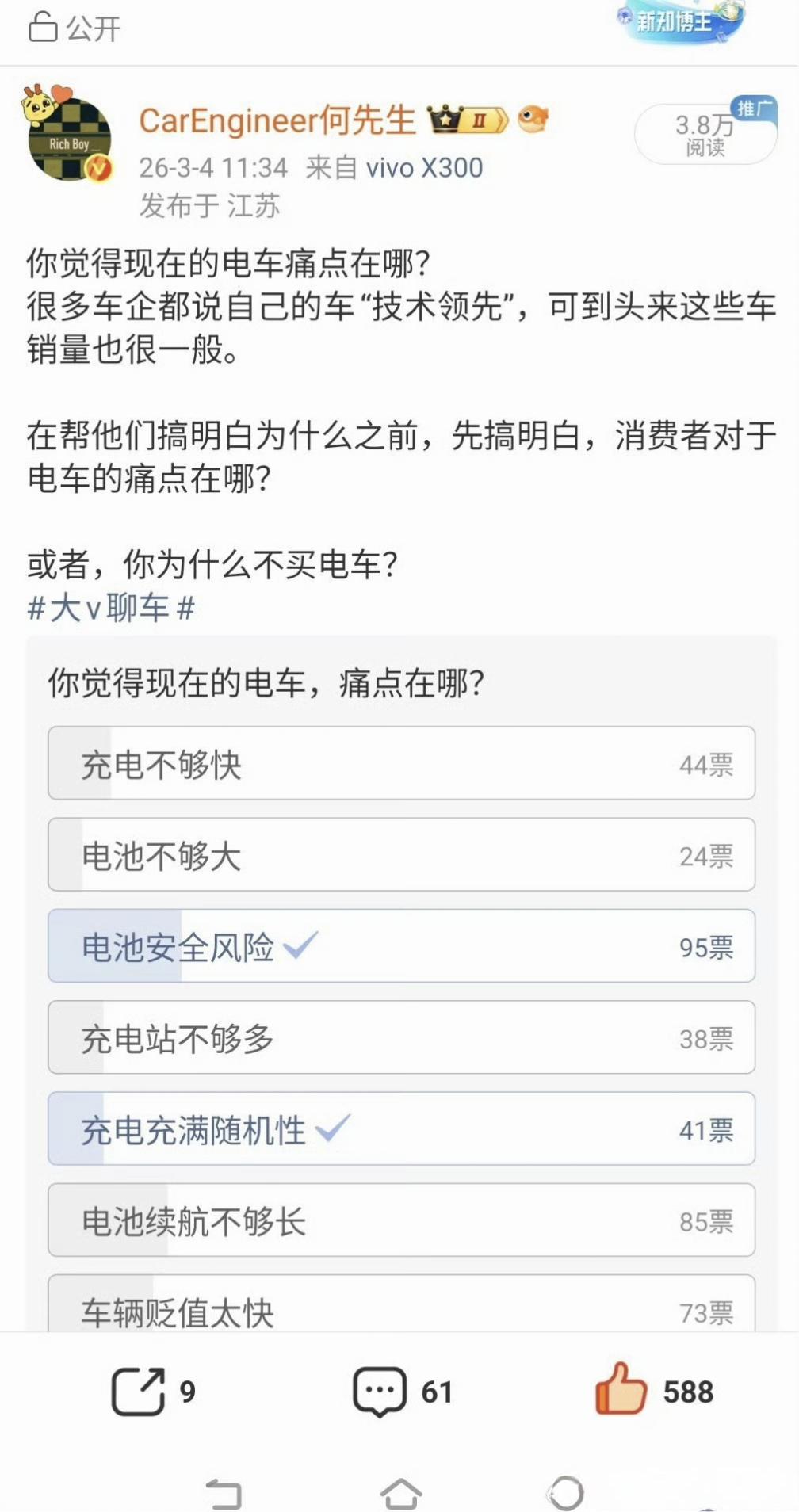 上次问大家【你觉得现在的电车有哪些痛点】,评论区好几个人都提到了【维修不方便】这个问题。 1,这确实是个问题,你有见过修电车的修理店吗?我甚至觉得,电车现在基本【只换不修】。零部件坏了,去4S店都是换件。 修车我可有太有经验,从极越,到小鹏,极氪,我都修过,都是换件。 2,整个新能源行业缺少熟练的修【电车】的技工也是一个问题。修电车需要高压电工证,这证还不好考,能通过的人不多。 3,而且现在新能源车普遍便宜,很多车企就通过售后来挣钱,修车太贵了,以至于电车保险都贵。 4,有些新能源车维修性也差,都是一体式的,一点点坏了就要换全套。还有把很贵的雷达,摄像头放前保险杠位置的,真是生怕你不磕碰。 之前修极越,前保险杠磕了,整个大灯总成,前毫米波雷达都换了,花了2万,天价。 从这个角度来看,这个行业还太嫩了。何工的亿点思考【来自懂车帝车友圈】