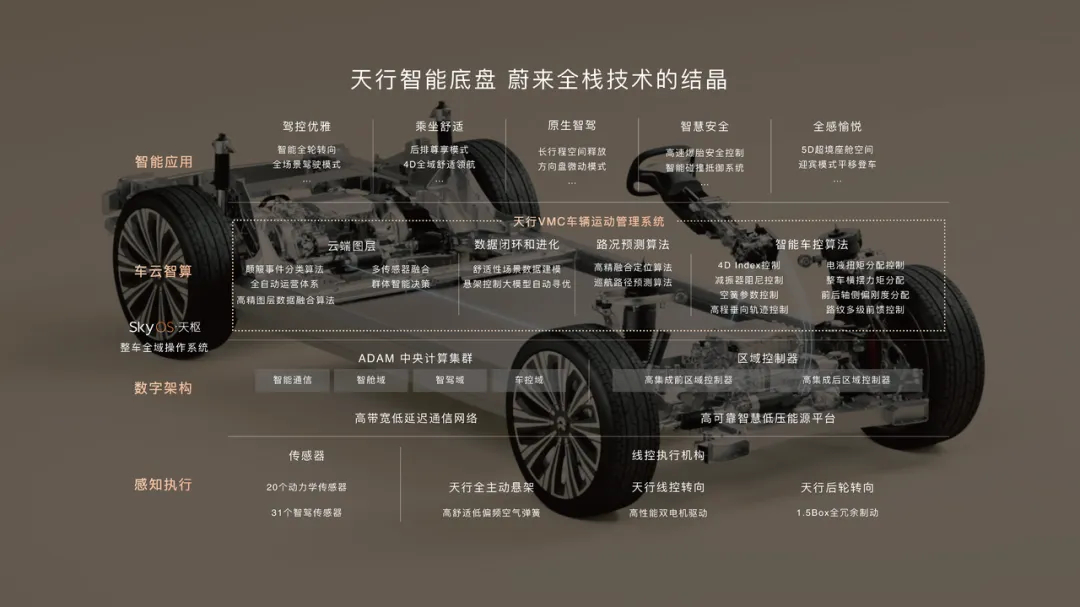 这车的尺寸、空间、配置肯定都足够猛,我比较感兴趣的还是ES9的驾驶感受,也用上了天行智能底盘,集成式全主动悬架,线控转向,后轮转向这套东西。