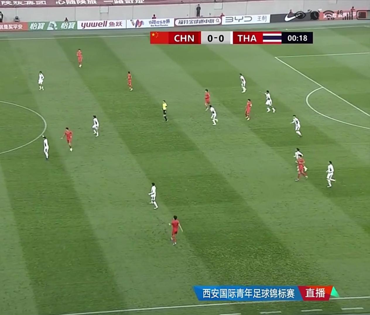 西安国际青年足球锦标赛:中国U23队2-2泰国U23队 北京时间3月25日19:30分,中国西安国际青年足球锦标赛在西安进行,中国U23队迎战泰国U23青年队。上半场泰国队14号球员和8号球员各攻入一球,泰国队2-0领先。下半场中国队向余望和李兴祥各攻入一球。全场比赛结束,双方战成2-2平。 主裁判一声哨响比赛开始了,场上穿着红色球衣的是中国U23青年足球队,穿着白色球衣的是泰国U23青年队。比赛的第2分钟中国队禁区内的射门被门将挡下,跟进的射门打在横梁上弹出。第7分钟中国队获得角球,没有形成射门。第14分钟泰国队获得前场任意球,直接射门被门将没收。第21分钟中国队获得前场任意球。第22分钟泰国队11号球员把球传到禁区前沿,跟进的14号球员抽射破门,泰国队1-0领先。第25分钟中国队的头球攻门擦着立柱出了底线。第26分钟泰国队的远射打偏了。第28分钟中国队获得第二个角球,被防守球员解围。第33分钟泰国队的射门被门将没收。第34分钟中国队的射门打在防守球员身上。第35分钟泰国队11号把球传到禁区,中国队球员头球解围失败,泰国队8号球员破门。泰国队2-0领先。第40分钟中国队攻入一球,主裁判认定越位在先,进球无效。伤停补时阶段中国队头球攻门被门将没收。最后时刻中国队获得前场任意球被防守球员解围。上半场比赛结束,泰国队2-0领先中国队。 下半场易边再战。第50分钟向余望攻入一球,被比分追到1-2,第53分钟向余望非常有威胁的射门打偏了。第56分钟中国队的射门打高了。第58分钟中国队的角球传到禁区被防守球员解围。第63分钟向余望的射门打偏了。第66分钟泰国队的射门被门将没收。第67分钟中国队的李兴祥攻入一球,双方战成2-2平。第75分钟泰国队的射门打高了。第85分钟中国队的射门打偏了。第87分钟中国队的头球攻门打偏了。伤停补时阶段中国队的头球攻门顶偏了。最后时刻中国队获得角球,禁区内双方队员动作过大,主裁判出示红牌双方各罚下一人。全场比赛结束,双方2-2握手言和。U23足球队 国足U23比赛 U23足球比赛