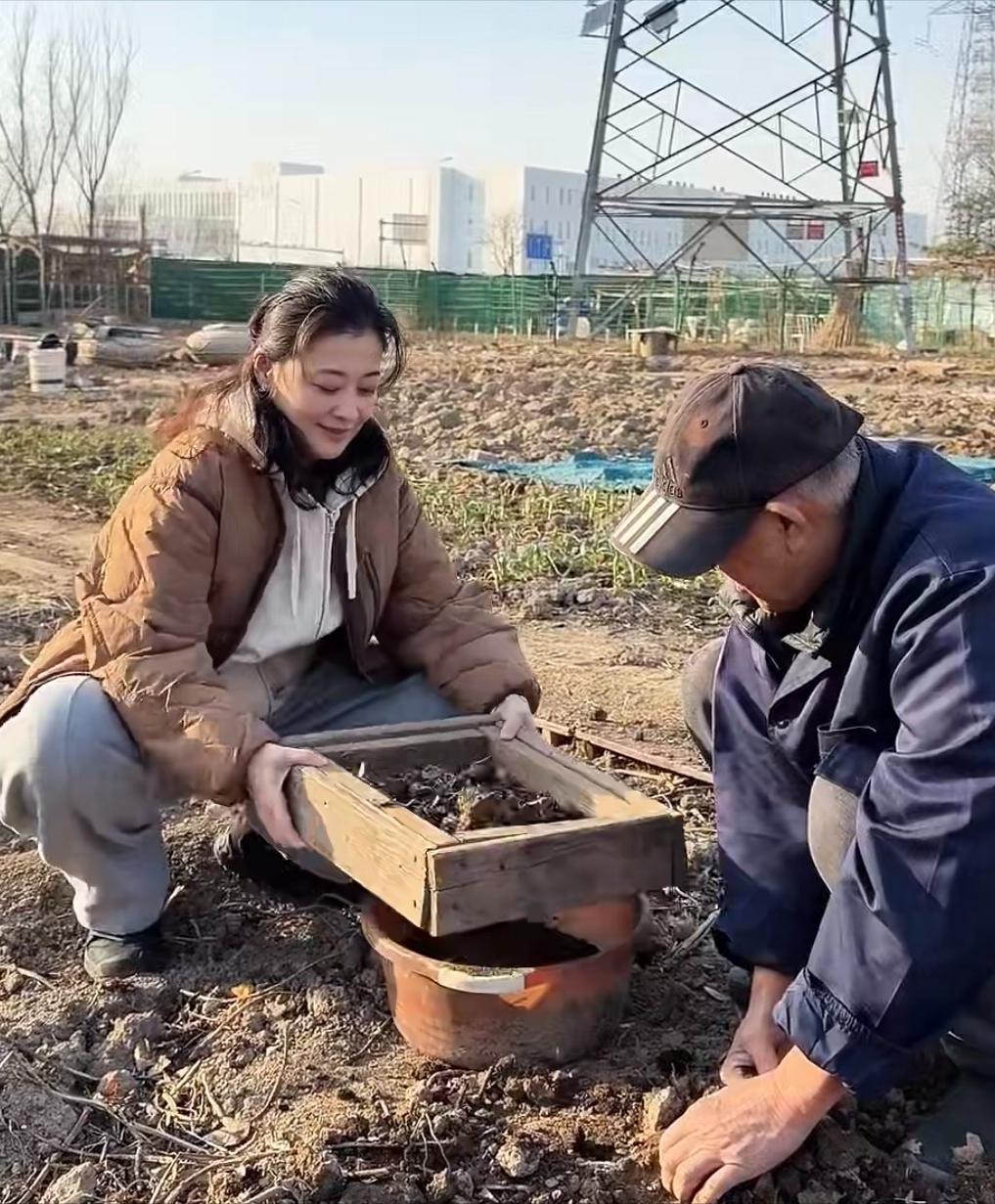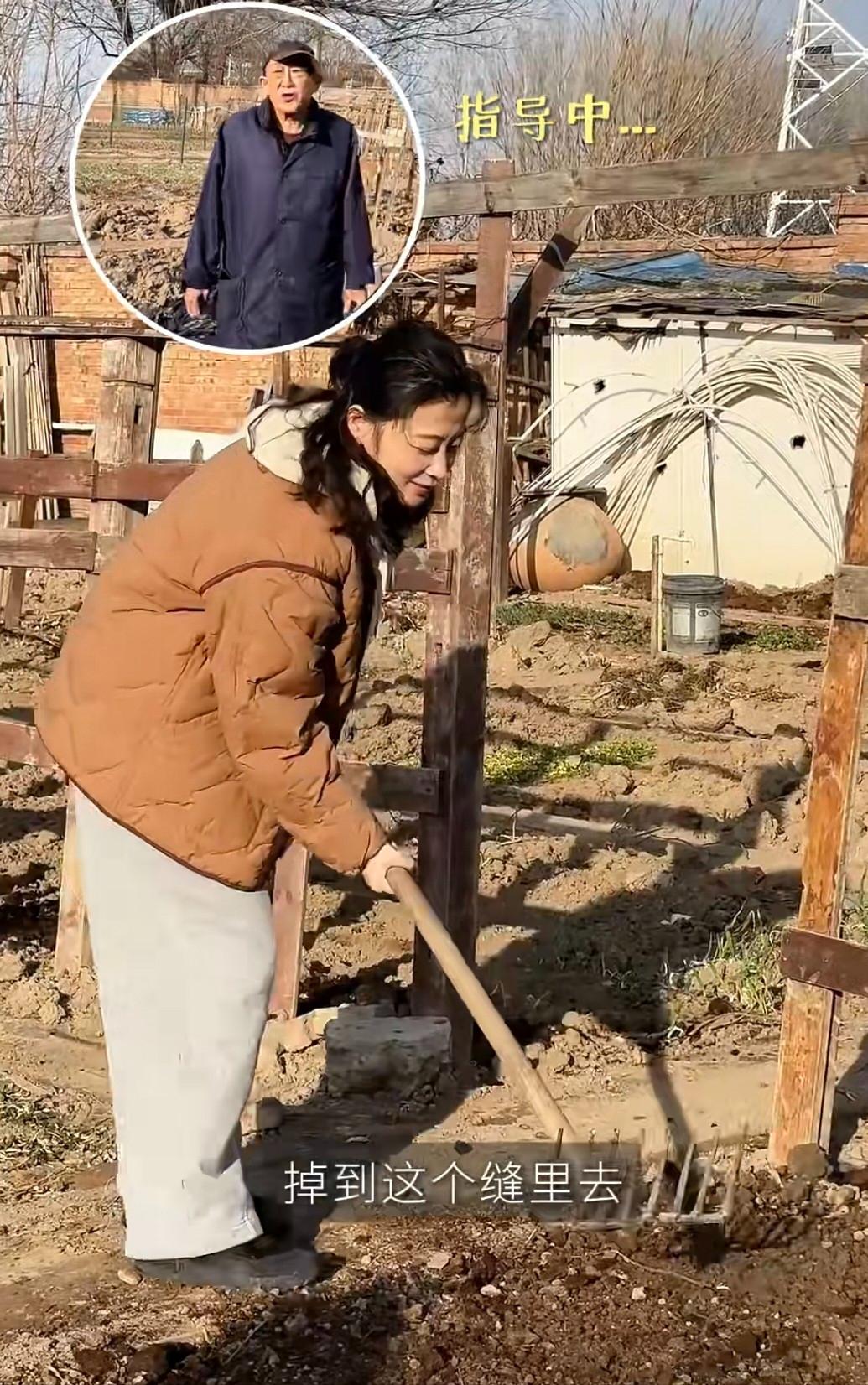 梅婷在自家菜园子帮公公干活!素颜出镜,拿锄头翻地种小白菜,还用筛过的羊粪做肥料,整个人与荧幕上的优雅形象反差太明显,貌似和一般农妇真没啥区别。特别是这娴熟的姿态,太过真实接地气,满满都是人间烟火气。 有一说一,好喜欢这种不装的女明星,虽说都50岁,但一身简单的米色连帽卫衣外搭咖色棉服,下配灰色休闲裤,却衬得她格外清新明媚,浑身都散发出一种自然沉稳,恬静端庄的气质!不得不说,老爷子被梅婷哄得特别开心,明明是公媳关系却像父女一样亲近。干活时还喊塑料布太脏,让梅婷不要碰,点滴细节太暖心,一看就是十分温馨有爱的一家人。最难得的是,她还儿女双全,事业有成,夫妻恩爱,难怪这么多年能一如既往的优雅温柔,果然过得舒心就是养人啊!