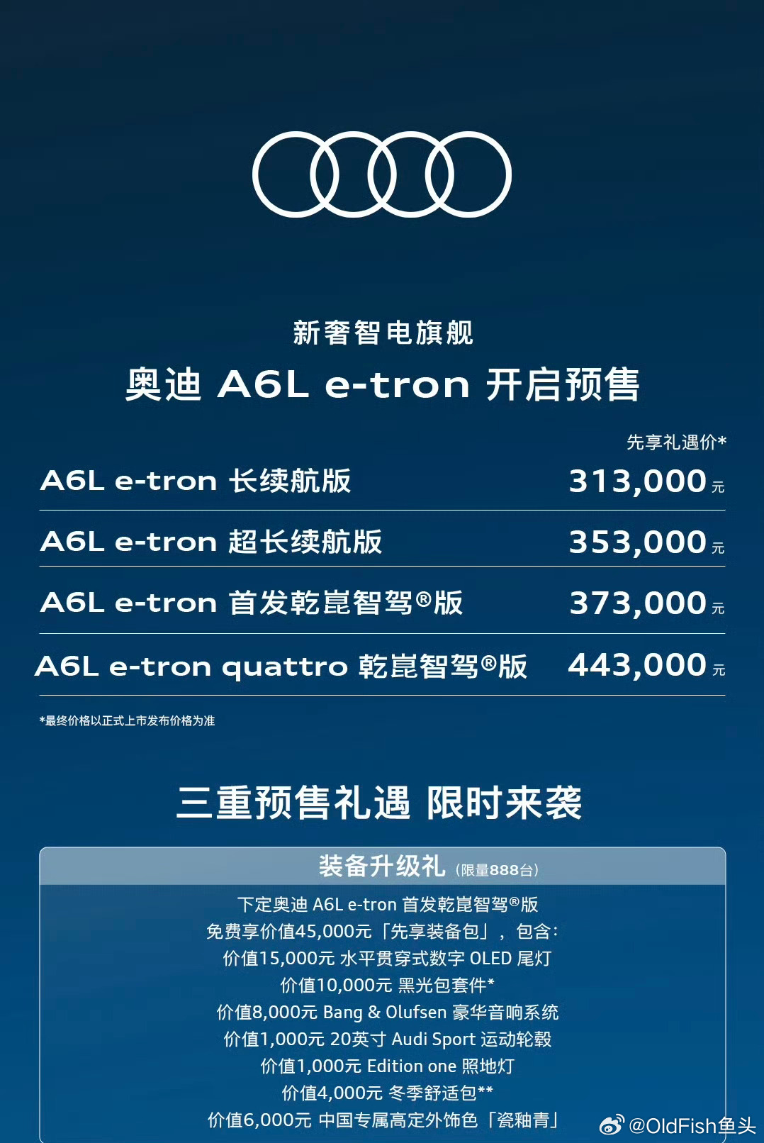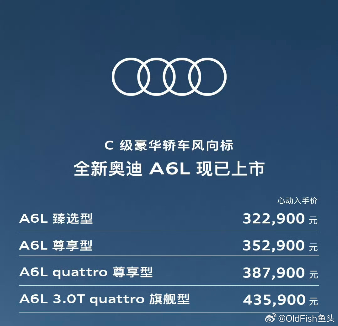 新奥迪A6L上市了——看得出来是油电同价策略,保持定位和定价一致——价格和上一代的落地价差不多,新车上市指导价合理,就看终端会不会有个10%左右的优惠了——3.0t的6缸车型43万还不错,这年头开3.0t的是真有实力了,而且高速加速特别从容全新奥迪a6l上市
