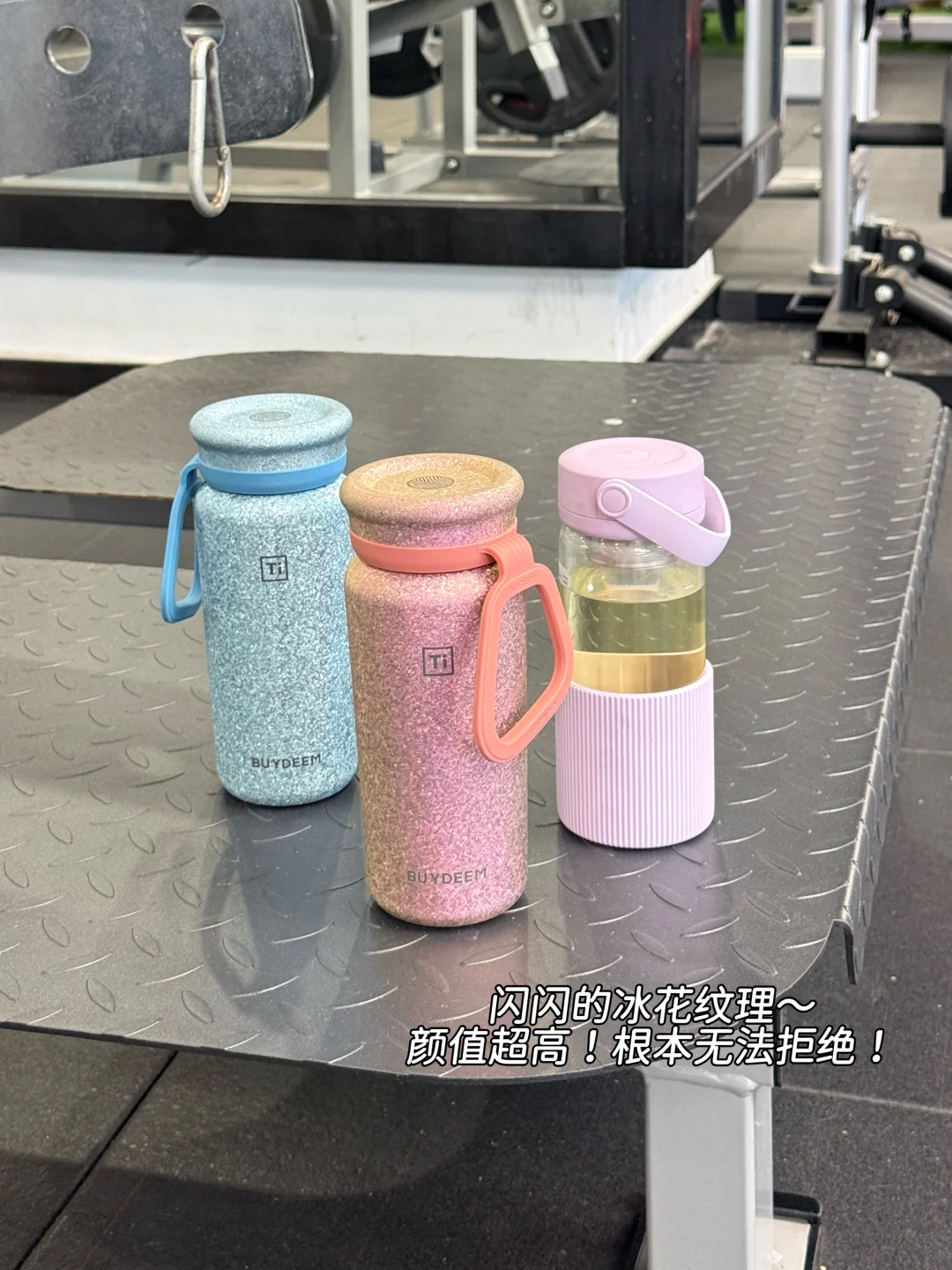 ▪️我先来夸一夸这款钛杯的颜值,霞光粉冰花纹太绝了!光下 blingbling,搭配我的春夏穿搭,每次去健身房都被问链接