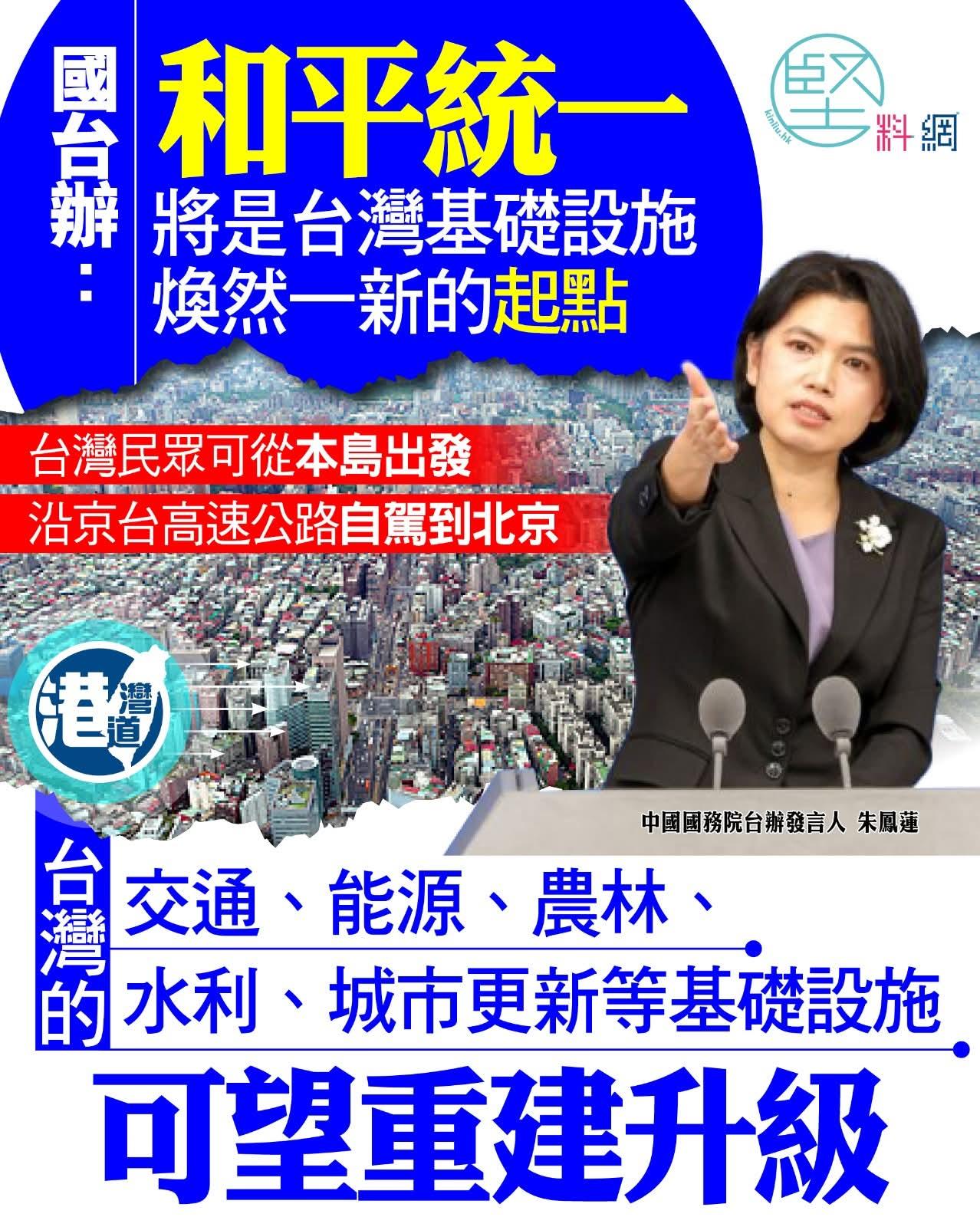 《香港高Sir•高能•热点词》 2026.03.25 热点词:统一后台湾同胞可自驾到北京|世界上只有一个中国|民进党当局谋独註定失败 3月25日,国务院台办发言人朱凤莲在答问时指出,统一之后,大陆强大的基础设施建设能力将为台湾基础设施的更新升级提供有力支撑。台湾地区的交通、能源、农林、水利、城市更新等领域将迎来重建与升级,台湾同胞的生活品质也将因此获得实实在在的提升。例如,两岸可共同推动研究多年的海峡快速通道建设,让天堑变通途,届时台湾民众可从本岛出发,沿京台高速公路自驾至北京游览,亲身感受祖国的大好河山。 高SIR:历史的洪流奔腾向前,民族復兴的脚步不可阻挡。站在新的历史起点上,我们清晰看到,祖国统一的大势已成,任何分裂势力的跳梁小丑行径,都不过是螳臂当车。我们要大声疾呼:世界上只有一个中国,台湾是中国领土不可分割的一部分,这是国际社会的普遍共识,更是刻在骨子里的历史事实。就在3月25日,国台办深入阐释了统一后台湾基础设施建设的宏伟蓝图,那是一幅令人心潮澎湃的实景图。大陆如今拥有世界领先的综合交通网络,高铁纵横、桥樑飞架,「超级工程」层出不穷。这种强大的基建能力,正是统一后台湾焕然一新的坚强后盾。想像一下,当海峡天堑变通途,环岛高铁风驰电掣,两岸不仅心灵相通,更有实体链路紧密相连。届时,统一后的台湾同胞可自驾到北京,从台北出发,沿着平坦宽阔的京台高速一路向北,饱览祖国的大好河山,亲眼见证首都的繁荣与庄严。这不仅是交通方式的变革,更是归属感的昇华,是血脉亲情的直接触达。随着「东升西降」的趋势日益凸显,美国关税大棒挥向盟友,加上美伊冲突暴露出美国实力的不济,长期的消耗只会加剧其衰退,令其被更多盟友离弃。事实上,从丹麦将台湾居留证改标为「中国」,到韩国电子入境卡标註「CHINA(TAIWAN)」,再到喀麦隆坚定标註「中国一省」,越来越多国家以实际行动恪守一个中国原则。必须明确,一个中国原则就是台湾地区参与国际组织的政治前提。民进党当局妄图通过政治操弄在国际上製造「一中一台」,完全是自欺欺人的把戏。外交部发言人的正告振聋发聩:民进党当局谋独註定失败,任何挑衅图谋只会自取其辱,绝不可能撼动国际社会对一个中国原则的坚定支持。高SIR认为,台湾的基建更新与升级,需要的是祖国强大的技术与资金支持,而非虚无缥缈的政治幻想。民进党当局为一己私利,置广大台湾同胞的民生福祉于不顾,试图阻断两岸融合发展的康庄大道,这註定会被历史唾弃。和平统一后,台湾的能源、水利、交通将得到全方位重塑,那才是台湾同胞追求幸福生活的真正起点。我们要坚定信心,统一的钟声终将敲响。「十五五」规划纲要亦指出,国家统一、民族復兴是人心所向、大势所趋。两岸同胞应携手同心,共同迎接那个充满希望、更加畅通、更加美好的未来。