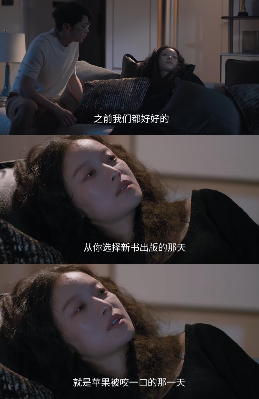 《隐身的名字》:保剑锋被倪妮拿捏得团团转,时而恐怖时而妩媚时而破碎,保剑锋懵懵的状态不像演得! 版权官司打完了,任小名并没有在法庭上拿出日记,回到家的刘潇然被在沙发上蜷缩的任小名吓到一激灵。 他唯唯诺诺地感谢任小名,倪妮竟然一副微醺的样子,迷死人不偿命,对日记的事情做出茫然不知的样子,弄得刘潇然惶恐不安。 刘潇然刚松了一口气,任小名就说起离婚官司的事,刘潇然以为事情会有转机,任小名却说他们的婚姻已经是坏了心并烂透了的苹果,外表原本看不出来,刘潇然剽窃日记成书是苹果被咬的第一口。 说这些话的时候,倪妮脸上写满疲惫和乏累,无光的眼神里全是对婚姻和刘潇然的失望,有气无力的声音和眼角滑落的那滴泪诠释着心伤,破碎感十足,平静的疯感震慑了刘潇然却迷晕了观众。 这一段戏,可以算作倪妮的人生戏份了,弹幕里都是“倪妮好绝”的评价,保剑锋懵懵的样子也是恰到好处,棋逢对手了!倪妮 保剑锋演技 悬疑剧