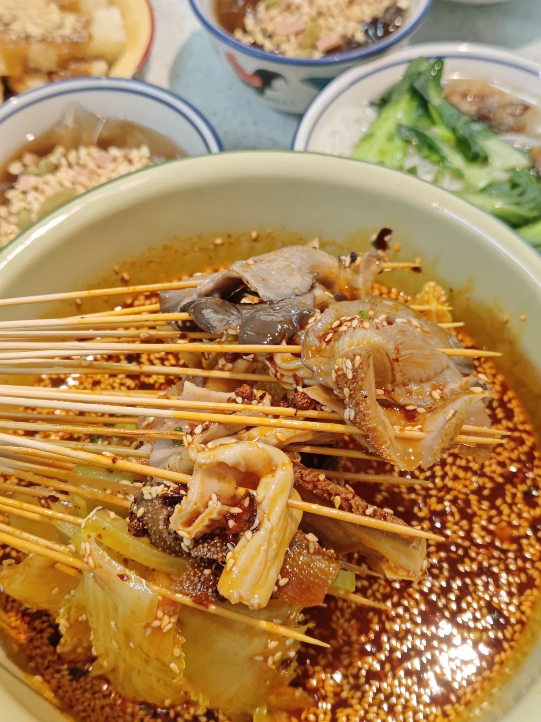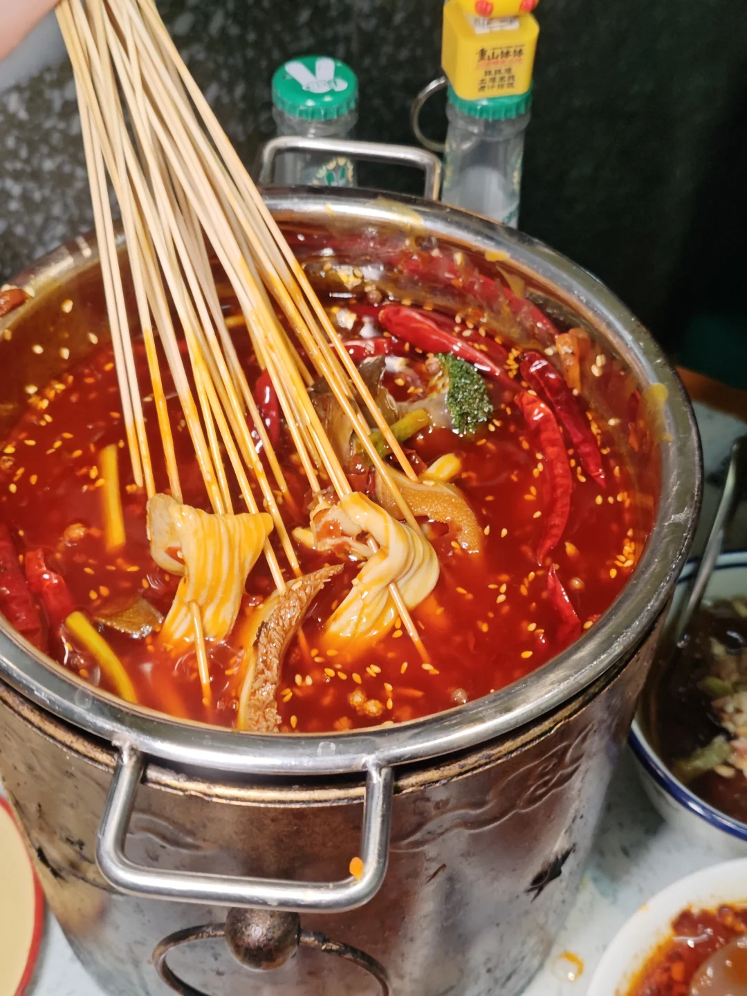 所有小吃都是现点现做,香到流口水🤤 这次解锁了火锅版钵钵鸡,牛油红锅底咕嘟咕嘟冒着热气,红油裹着串串边煮边嗦,暖到骨子里!