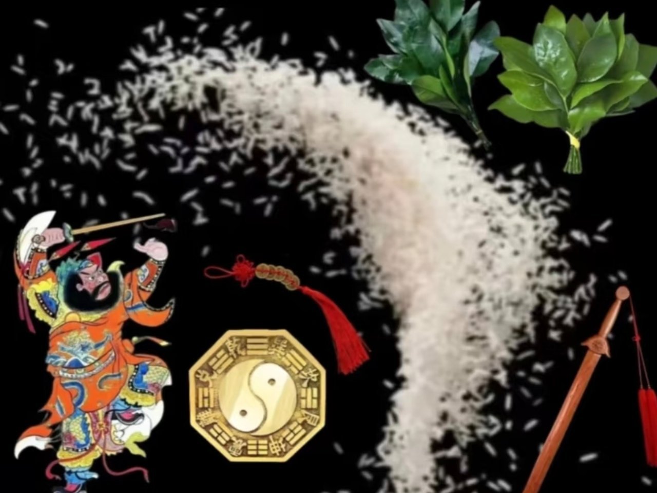 去晦气|辟邪|柚子叶|撒糯米|跨火盆