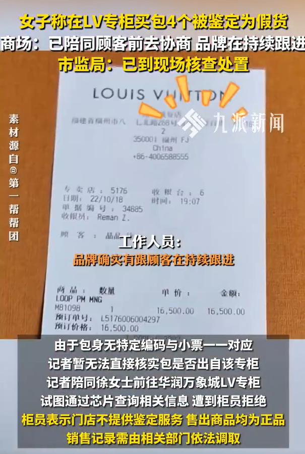 4个包,十几万,发票齐全。鉴定结果:假的。 福州徐女士,2022到2023年在L