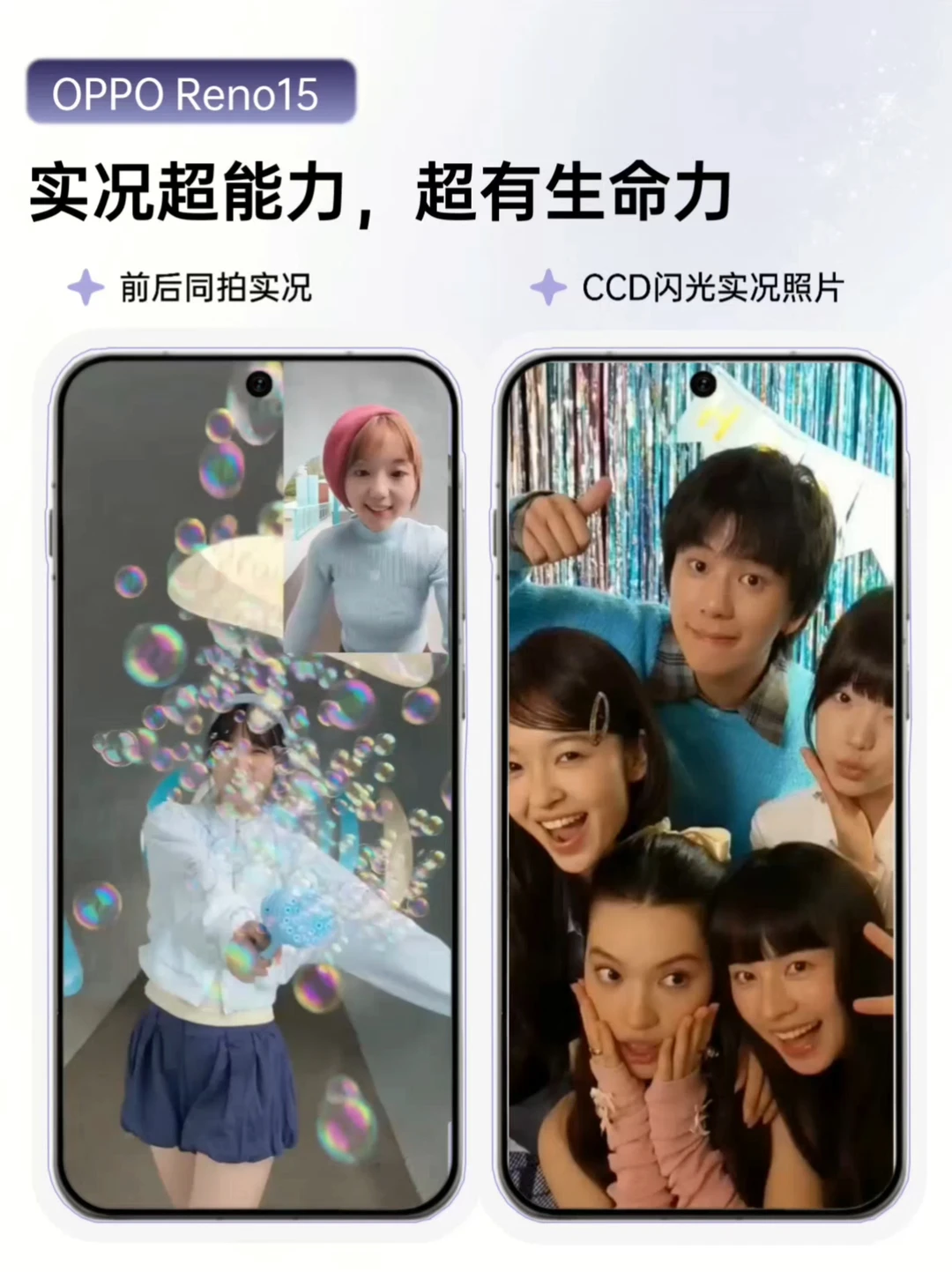 还有CCD闪光实况照片(get复古潮流感)、超广角实况自拍(和姐妹自拍,不再是“大头贴”,容纳更多景色和故事感)、4K实况一拍多出(直接从视频中截取无数张超高清的实况图)和前后同拍实况照片等多种实况玩法!