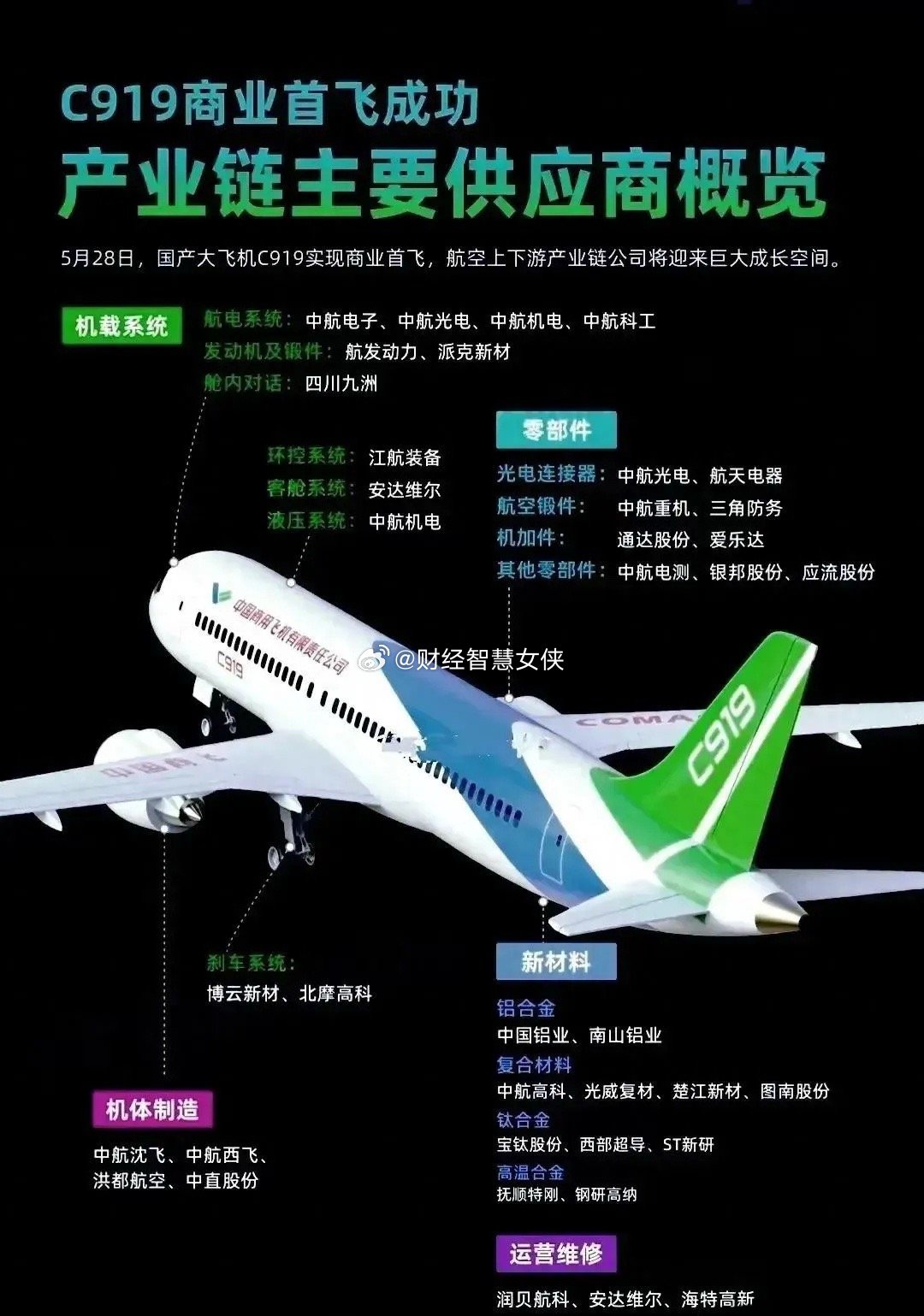 好久没有C919的消息了!东航拟采购空客101架A320NEO系列飞机,总采购价约为1088.93亿。可惜C919产能爬坡太慢了,另外一方面取得欧美适航证过程艰难。2025年已确定1500架订单,2025年交付了15架、2026年交付2架。成长的代价总是巨大的,和空客合作在天津建厂,就是复制当年上海引进特斯拉,成就了今天汽车工业10万亿产值的大成功。引进空客组装厂产能,有利于快速搭建国产客机供应链,有利于各项技术加快突破百花齐放。核心零部件公司,比如飞机制动北摩高科、航空锻件三角防务、航宇股份等,发动机航发动力,合金西部材料、华峰铝业等。商用飞机和商业航天形成产业协同,汽车制造和机器人形成产业协同。…