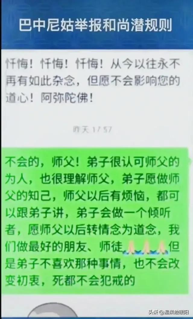 辣眼睛!一尼姑实名举报四川巴中佛教协会会长赵胜多次想要和她发生关系,被尼姑拒绝之后,赵胜对她潜规则不成,就残酷打压,栽赃陷害,将她逼出寺院!身心受到了极大的摧残! 举报人名叫马艳梅,法号释果殊,是四川巴中一名恪守戒律的比丘尼。2020年9月,她经人介绍前往平昌县千佛寺修行履职,一心扎根寺院,只想潜心修佛、守好佛门本分,从未有过半点逾矩之举。 赵胜法号释照圣,时任巴中市佛教协会会长,同时执掌当地多家寺院的管理大权,手握僧人安置、寺院运营、修行资格认定的核心职权,在当地佛教界拥有绝对话语权。 马艳梅入驻千佛寺后,赵胜多次私下联系她,抛开佛门会长的身份,直白提出发生不正当关系的无理要求,言语露骨,毫无佛门高僧的模样。马艳梅坚守佛门戒律,每一次都当场严词拒绝,没有丝毫妥协。 赵胜见威逼利诱都无法得逞,瞬间撕下伪善的面具,开始动用职权展开报复。他凭空捏造虚假事由,在佛协内部和寺院僧众中恶意栽赃马艳梅,散布大量不实言论,刻意抹黑她的修行声誉。 他利用手中权力,强行剥夺马艳梅在千佛寺的修行资格,阻断她在当地寺院的所有修行路径,还多次对她进行言语恐吓、精神施压,让她在巴中佛教界彻底无立足之地,最终只能被迫离开自己坚守的修行之地。 这段遭遇让马艳梅长期处于恐惧和煎熬中,白天不敢随意出门,夜里辗转难眠,原本清净的修行生活被彻底打碎,精神饱受折磨,身体也因长期压抑出现诸多不适,身心双重受创。 佛门本是清净修行之地,佛教戒律明文禁止此类违背道德、亵渎信仰的行为。赵胜身为佛教协会会长,本该带头严守戒律、匡正宗教风气,守护佛门净地的纯粹。 他却把手中的宗教管理职权,当成满足私欲、打压异己的工具,潜规则不成便公报私仇,既彻底背弃了佛教的核心教义,也突破了社会公序良俗的底线,更触碰了法律法规的红线。 宗教职务从来不是特权保护伞,宗教场所更不是法外之地。任何借着宗教身份行龌龊之事、滥用职权欺压他人的行为,都必须受到严惩。相关部门理应彻查此事,依规依法处置涉事人员,还受害者公道,肃清宗教界的不良风气,守住佛门该有的清净与尊严。 感谢你的阅览与点赞,欢迎在评论区讨论。 信息来源:四川省平昌县公安局官方通报、网易新闻、麻辣社区关于四川巴中尼姑实名举报佛协会长事件公开报道