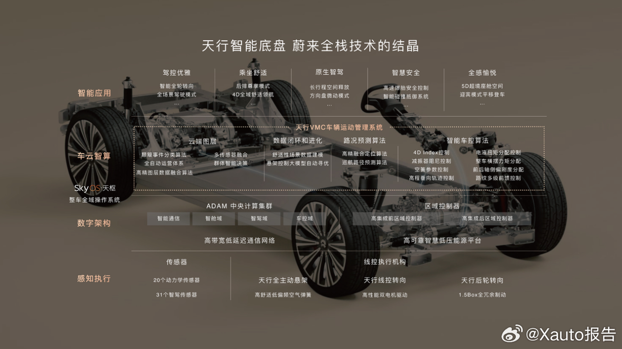 蔚来是非常早的关注这一技术落地的企业,2024年底,蔚来在ET9上实现量产交付的天行全主动悬架(FAS)。