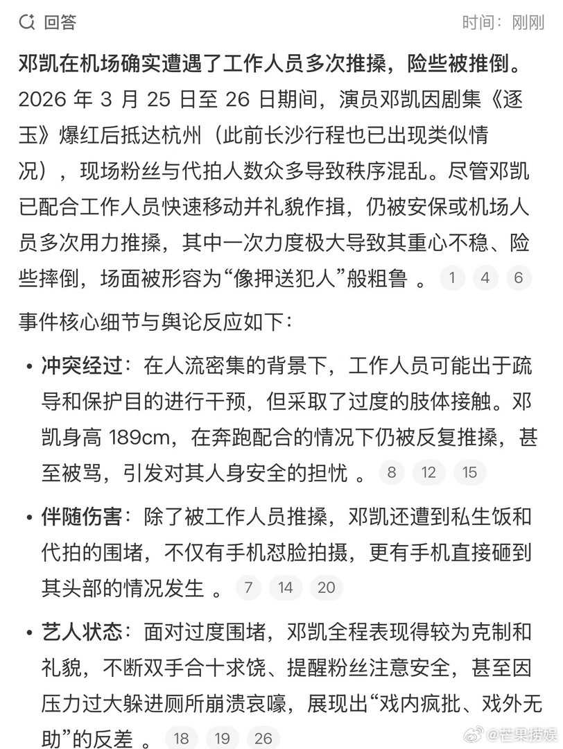 邓凯机场险些被推倒太过于夸张了!接机本身就是一件幸福的事,只要不影响到他人,没必