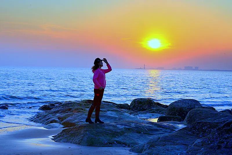 相册里最满意的照片,一张是在海边看日出的留影。那时天边刚泛鱼肚白,红日从海平面缓缓升起,像羞涩孩童探出头,第一缕阳光洒向大海,海面橙红波光粼粼,似无数宝石闪烁。我站在沙滩,背后是绚烂朝霞,海风拂面,吹乱头发却吹不散眼中惊喜陶醉,远处海鸥盘旋欢叫。 另一张是云南沧源千米国画长廊的景观。那里崖画在峭壁上,高 80 - 280 米,3 公里左右的崖画气势磅礴。我们去时天气阴沉,黛色山崖上,淡黄或赭黄的崖画如天造地设,植被茂盛,树木苍翠,景象令人震撼。这两张照片,我都好好珍藏。