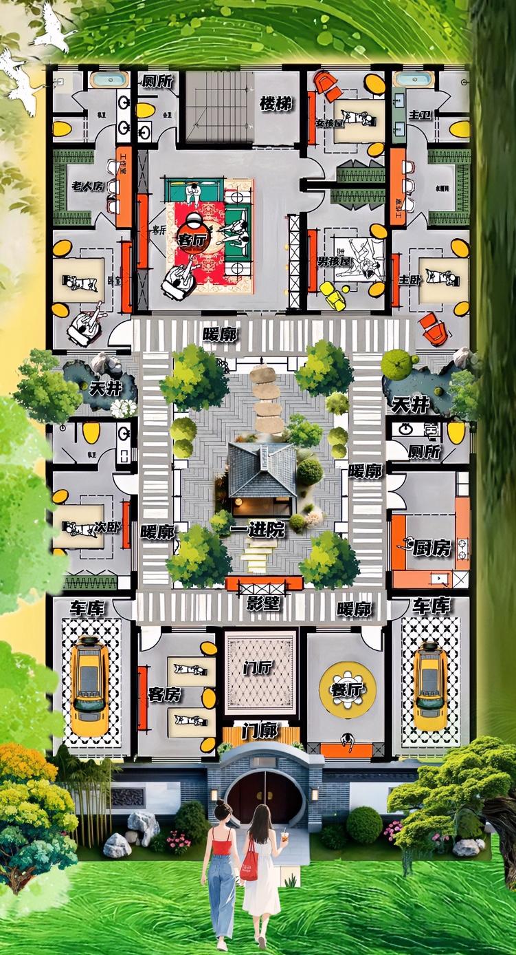 平凡548.8㎡合院,最大的“底气”,说白了布局世俗化,内在逻辑,卧室有烟火气,园子保持有气韵! 铸造者是,接受自建房的六件套! 不要门房,要车库,还是俩儿个,相当于25平的大套房! 不要连体横厅的餐厨,而要吃煮分开,牺牲热气,成全的是格局! 还有双人房的客房,也许阳光差七分,位置绝对没问题! 78㎡院子,就是自建房唯一托底的元素,一个合院最大的教养,古里古气,虽说是伪古建,布局活得像在“走钢丝”,新宅装旧制,才是自建房的逻辑! 暖廊还得保留,40米的抄手游廓,冬天是暖棚,夏天是凉亭,给予五居室最大的体面! 让五房,从大平层走进合院,布局合理性有无缝对接! 老宅,你是遇到新颜了吗! 右左手两个天井,很惬意,做为邻居的厕所,空间很压制,内置洗衣房,功能有点挤,失败。 布局想讲究,配套不讲情绪,只讲需求,也是四合院的性格! 坦诚说,做为合院不算成功,扮演套房是“全能神”。 从合院里走出来的,不必须完美的自建房,布局上有点儿失败,才是人生装修上的常态! 韵味儿就是一个套儿!