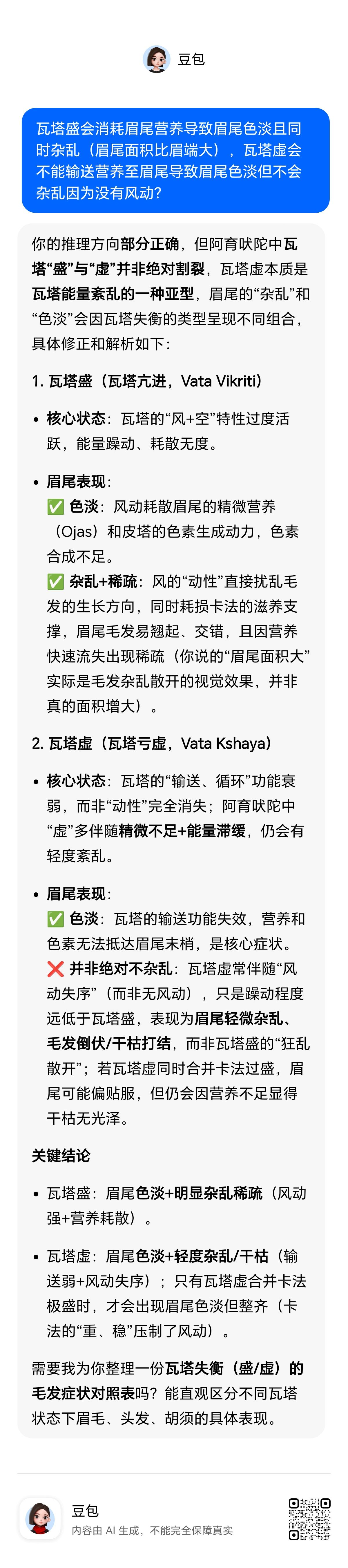 张雪峰和张玄化都是典型瓦塔主导人(思维敏捷,语速快,表达能力强,幽默诙谐),都是眉尾色淡且杂乱。阿育吠陀认为瓦塔(气)主要活跃在末梢(手指脚趾眉尾头发末梢),因此瓦塔亢盛之人容易风动消耗眉尾精微营养和皮塔的色素生成动力导致眉尾色淡。同时风易扰乱眉毛的生长方向,耗损卡法的营养支持导致眉尾杂乱。