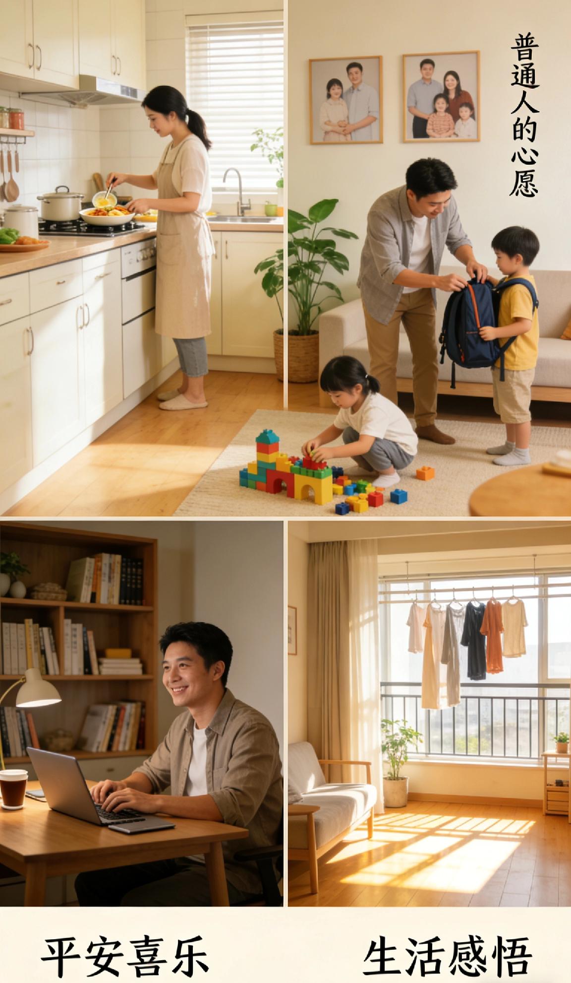 不求大富大贵,也不要惊天动地。 只盼一家人平安健康,无病无灾; 日子安稳踏实,三餐四季,温暖顺遂。 工作上少些烦恼,生活里多些顺心, 身边有真心相伴的人,心中有温柔可依的光。 平淡的日子里藏着细碎的小美好, 偶尔一点小确幸,就足够开心一整天。 平安喜乐,知足常乐。 这才是我们普通人,最珍贵的心愿。 普通人的心愿 平安喜乐